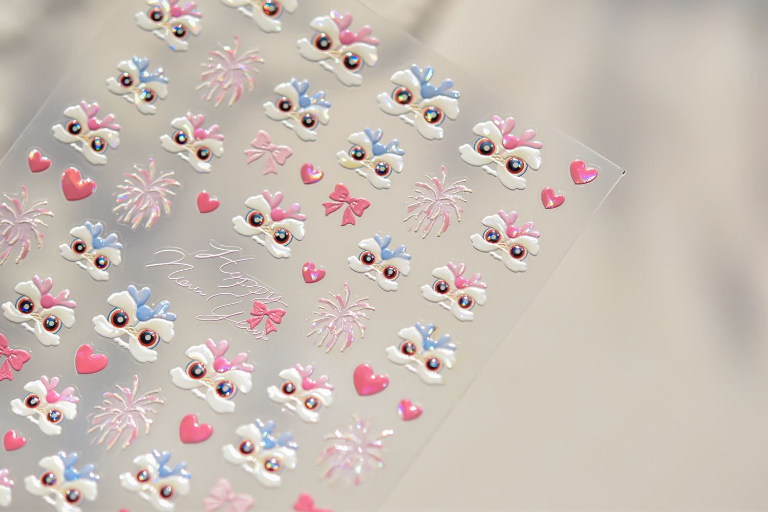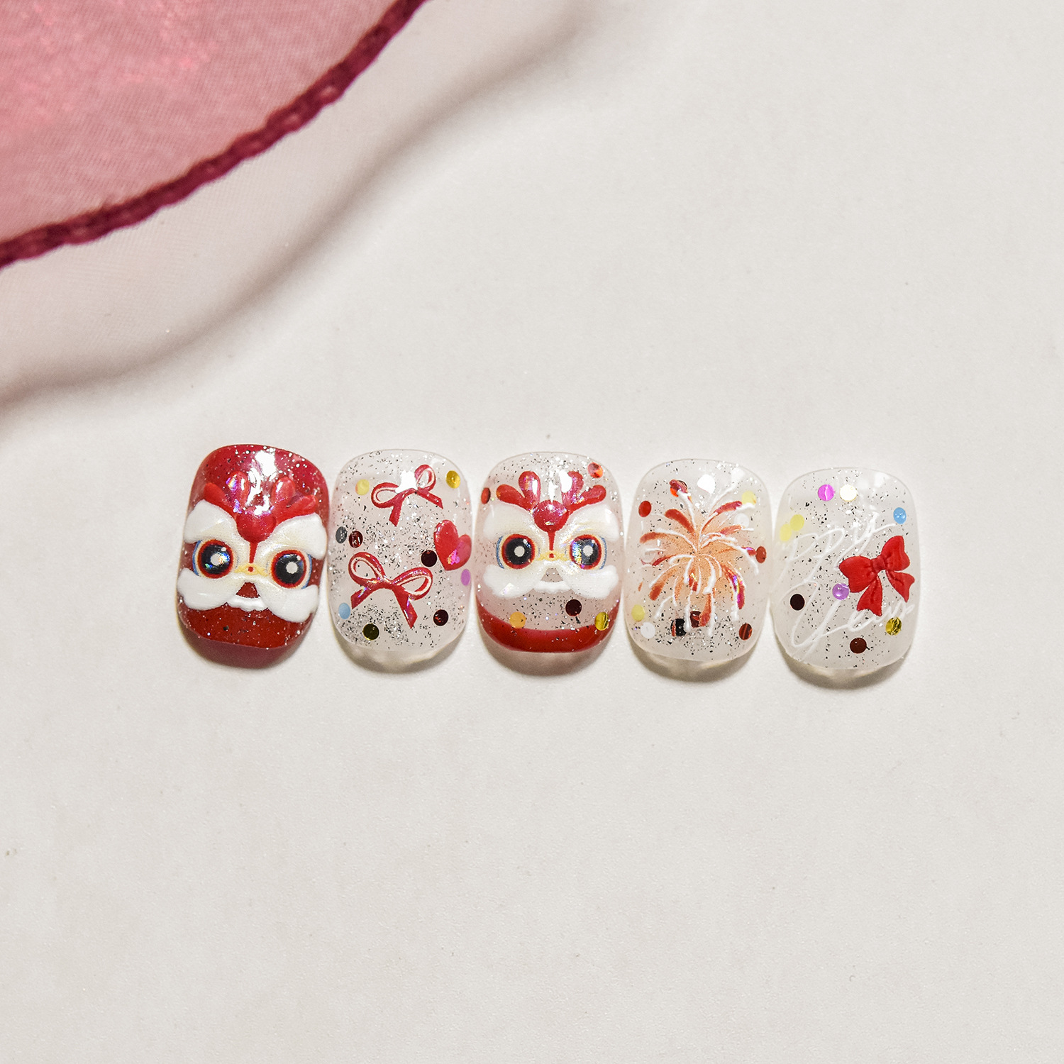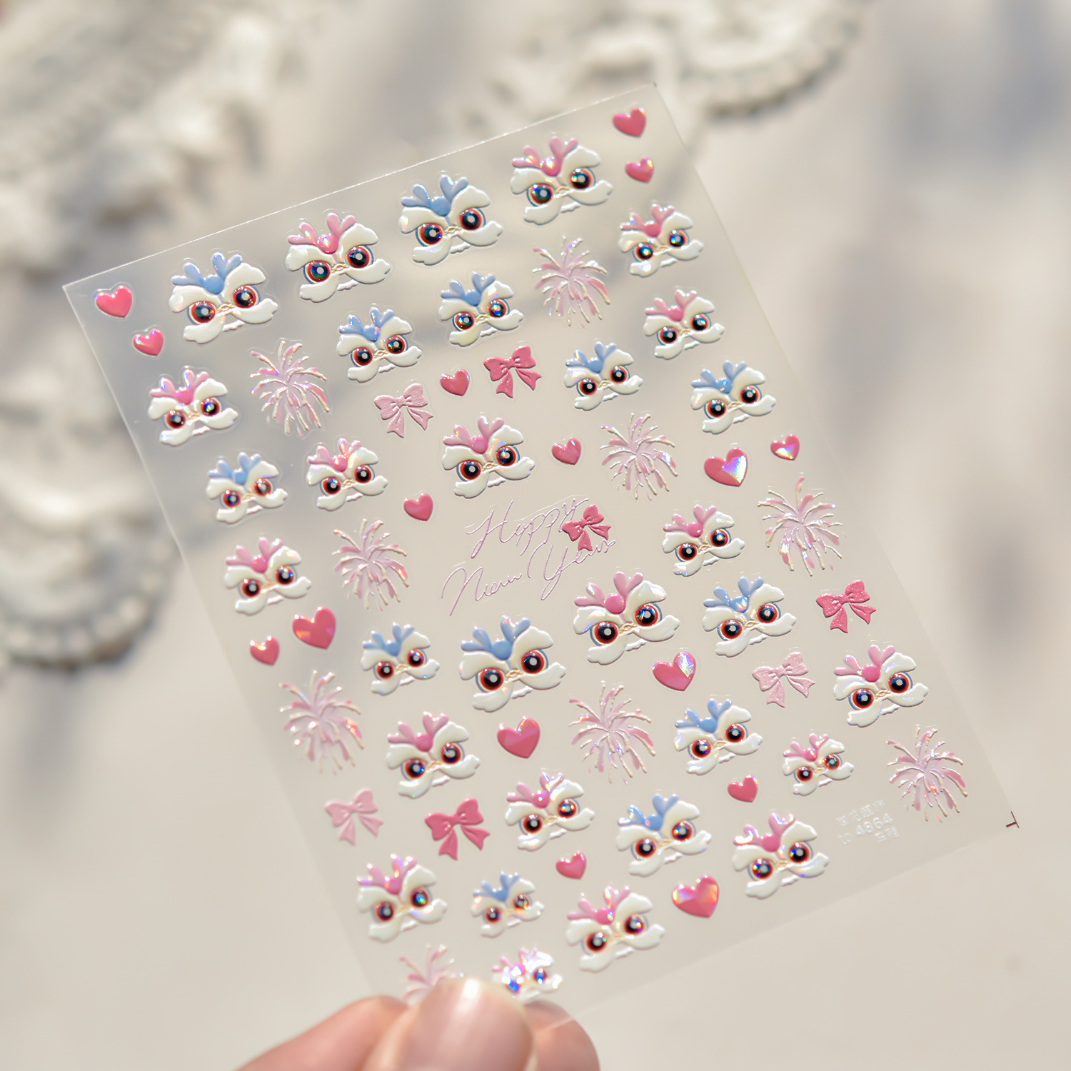 tomoni闪粉美甲贴纸小红书爆款可爱新中式指甲贴醒狮头套贴纸素材