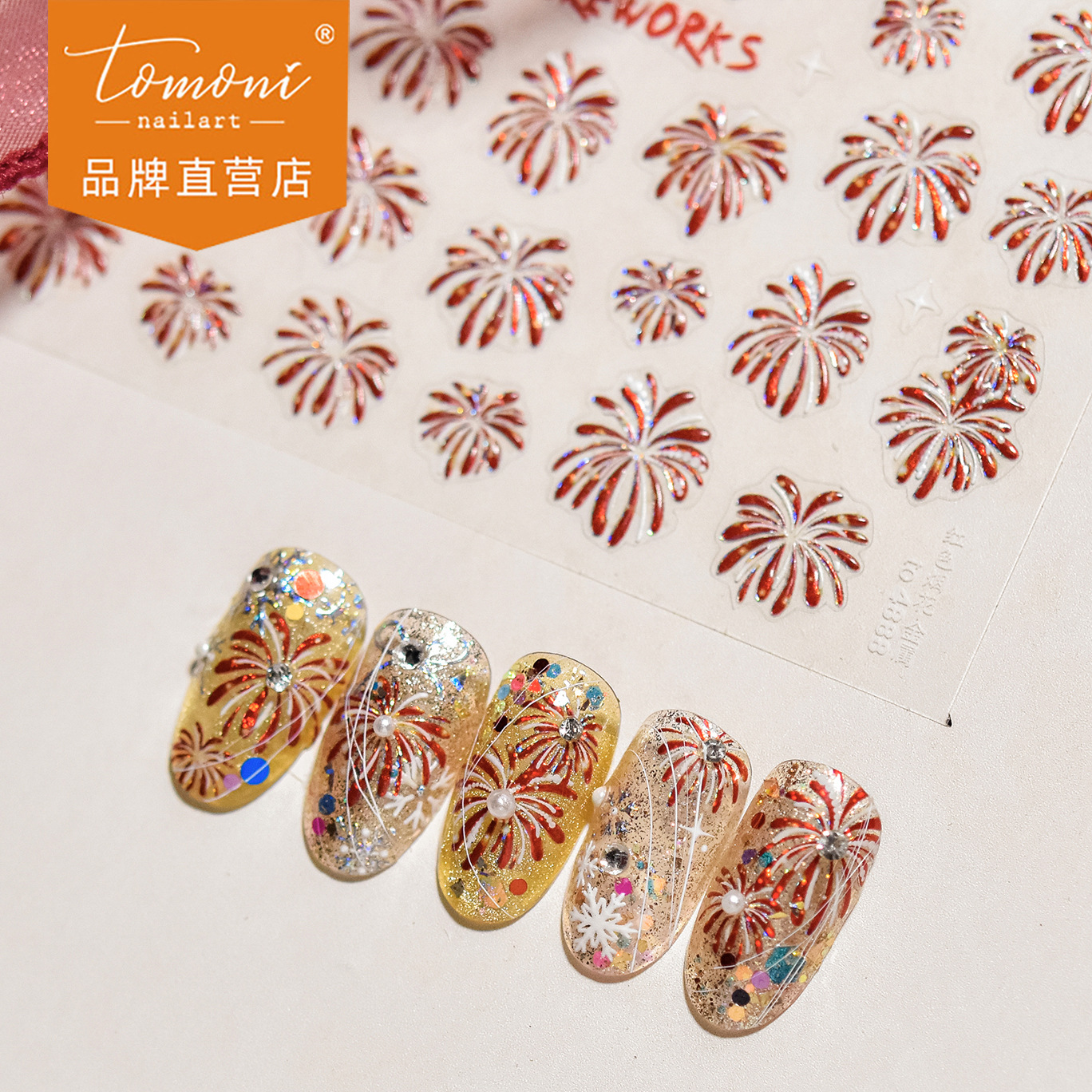 Tomoni金属ネイルシールdiy爆型日系文房具爪に赤い花火シールのネイルアートを貼る