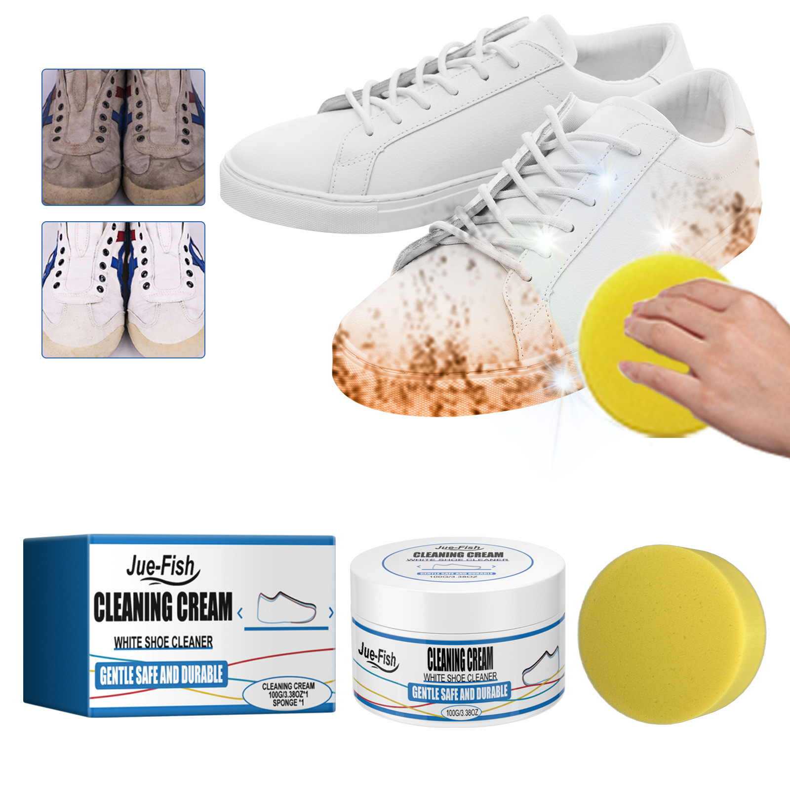 Jue Fish白い靴の清潔クリームを拭くと白い洗濯なし運動スニーカーで汚れを落とす