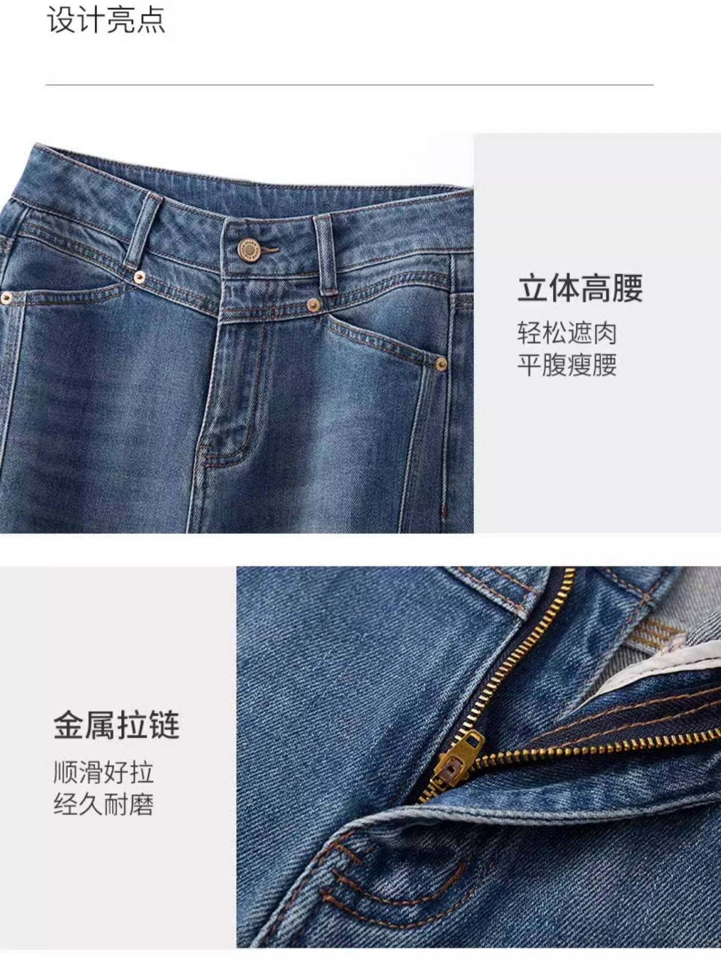 新中式風ストレートジーンズ2025年春秋新作人気商品、切り替えデザイン、小柄さん向け九分丈、ボタン付きストレートパンツ