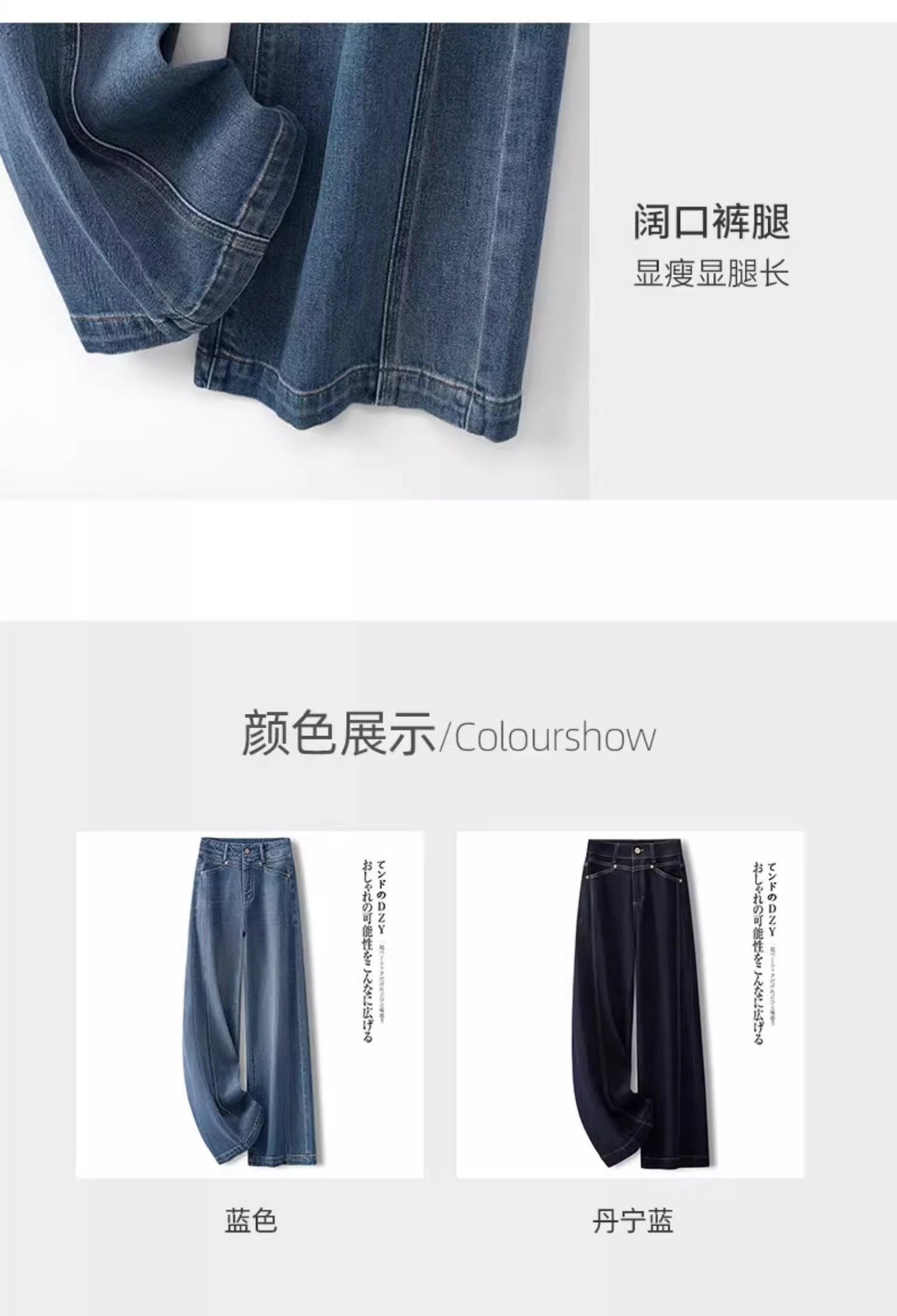 レトロなブルージーンズのワイドパンツの女性春秋2025の新型のペンダント感があります。