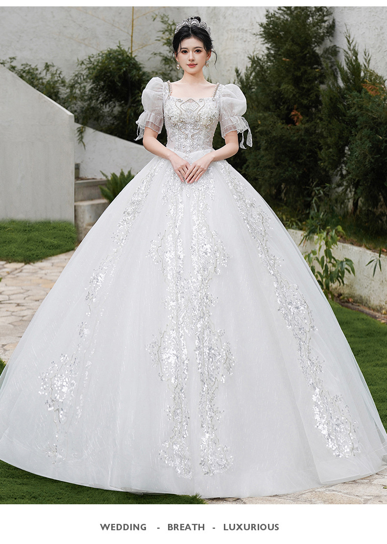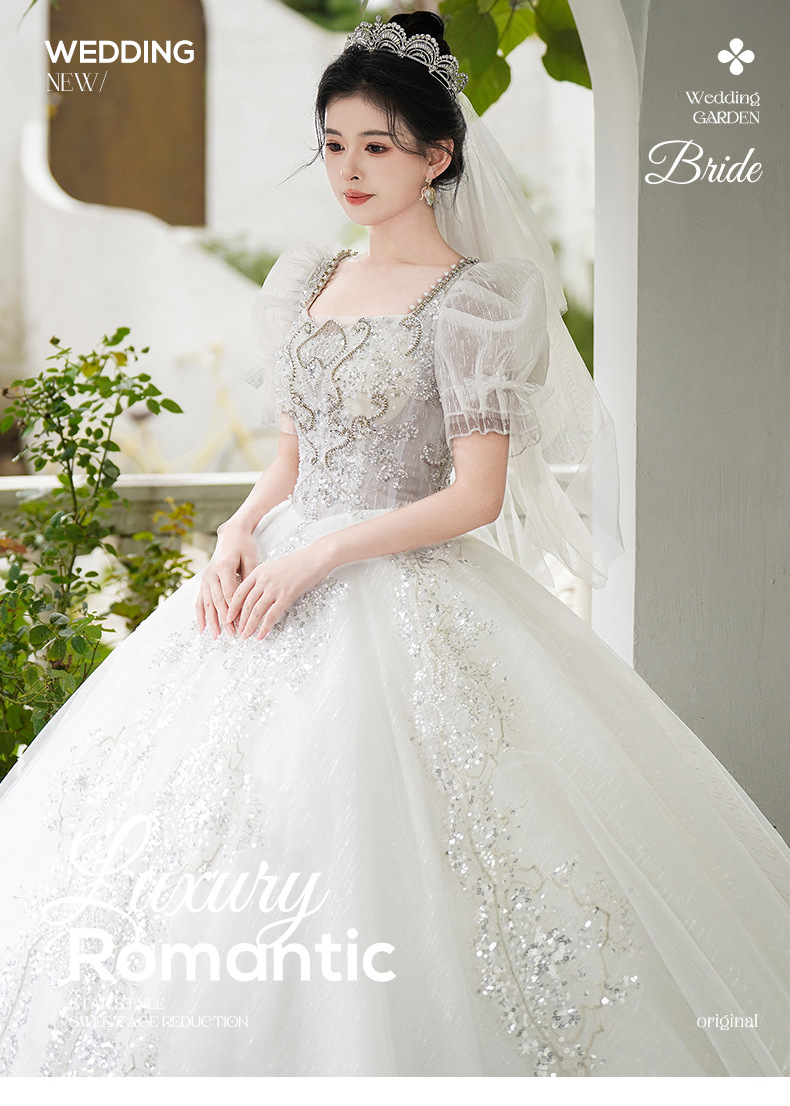 ウェディングドレス、花嫁用、新しいスタイル、トレーン付き、シンプルでエレガント、プリンセススタイル、フレンチライトスタイル、妊婦用、小柄な人向け、2025年ウェディングドレス