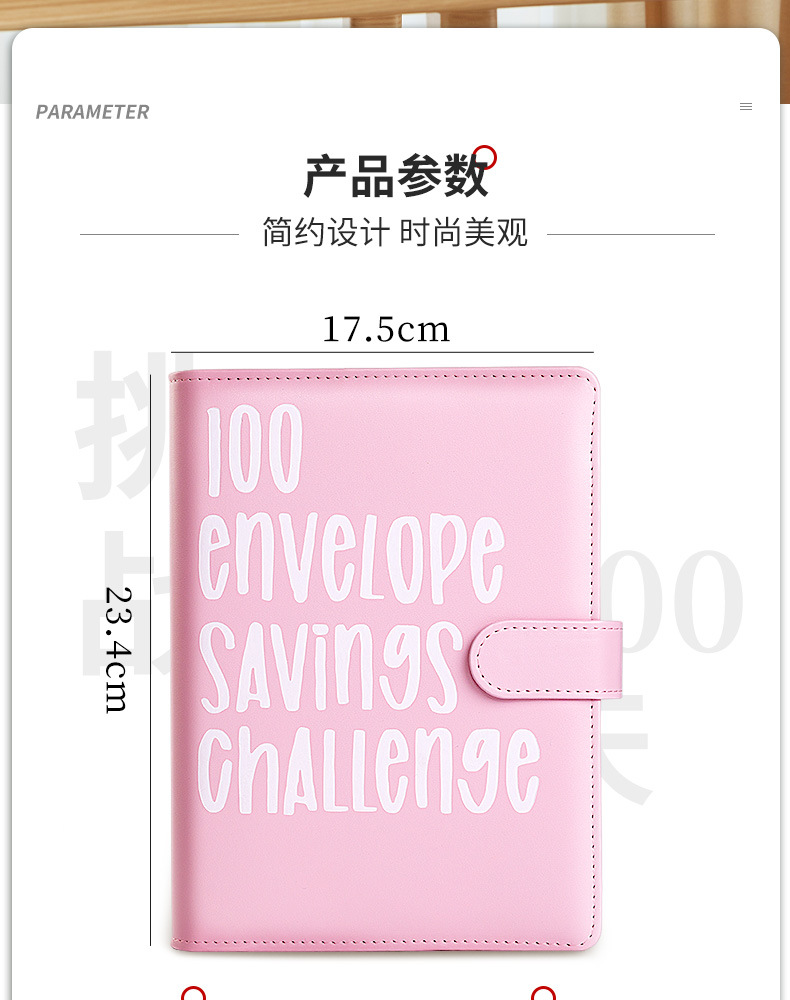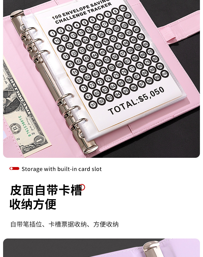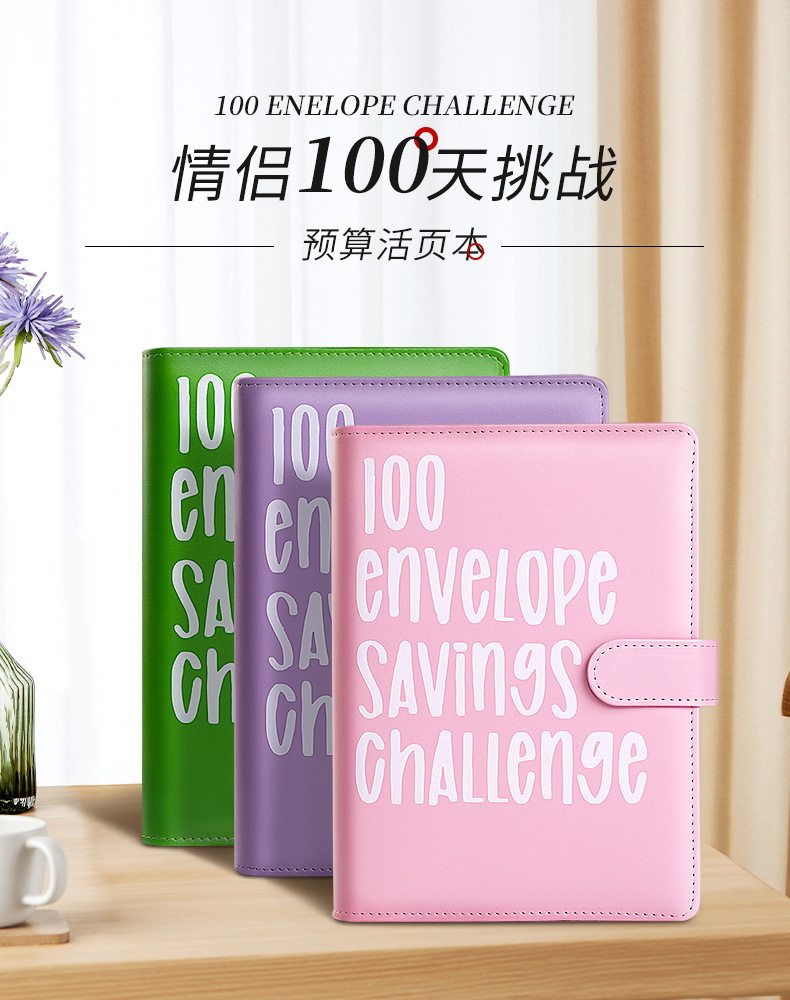 クロスボーダー人気pvc 100日カップルチャレンジルーズリーフ貯金帳A5ノート封筒現金予算手帳