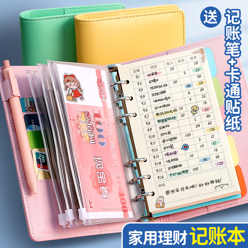 儿童记账本活页现金存钱本小学生手账本可放钱记账本多功能大容量