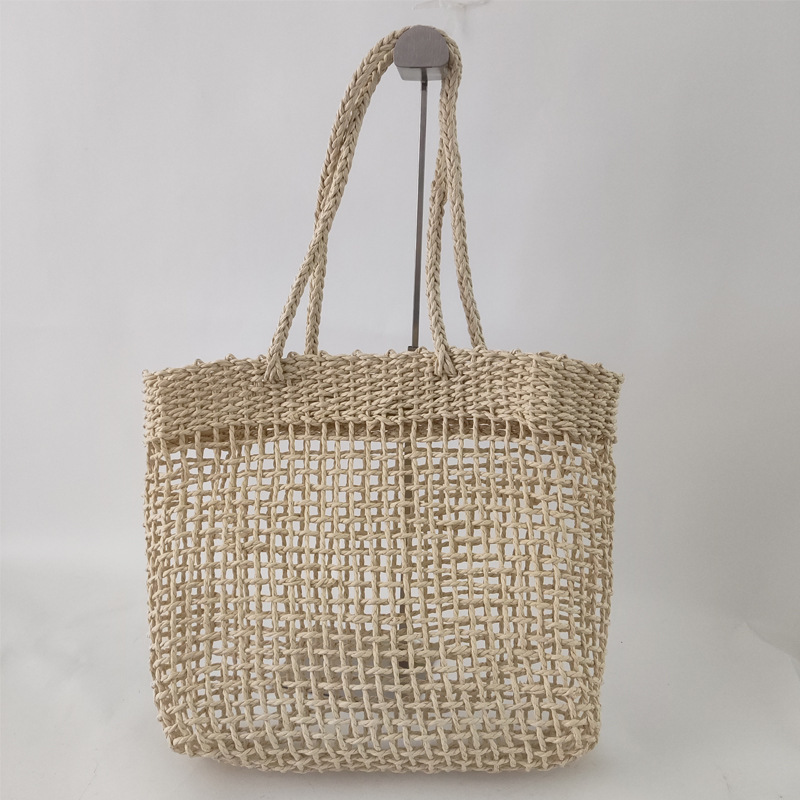 シンプルで人気のある紙のひも編みビーチ紙編みバッグ手作りの透かし彫り休暇草編みバッグ