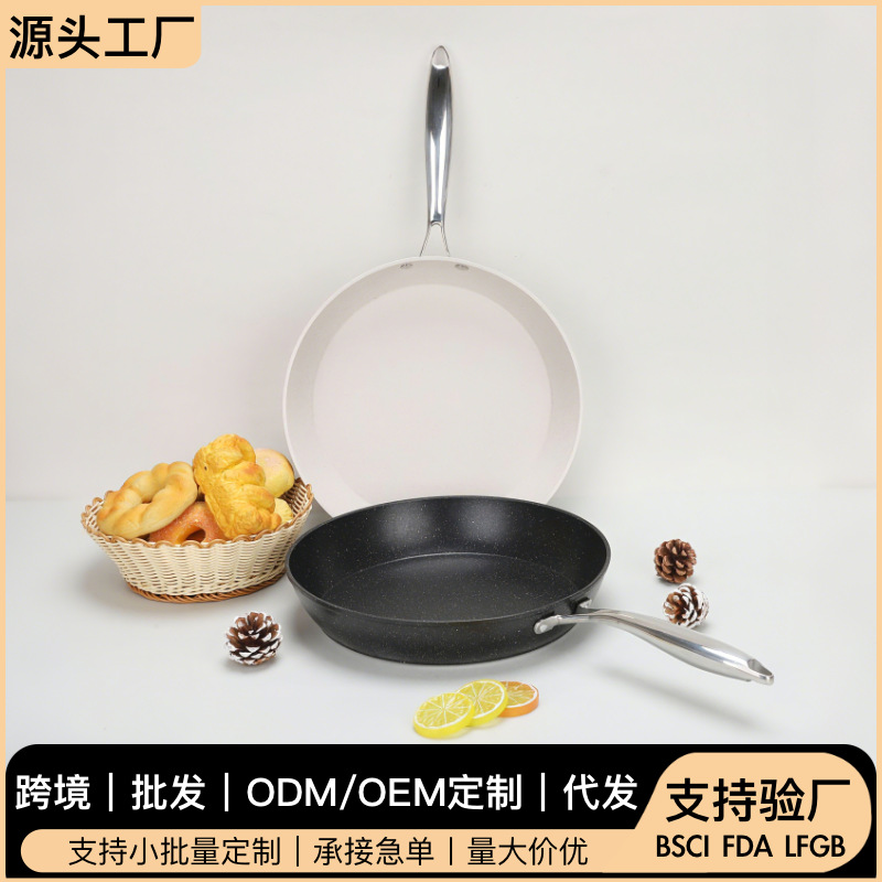出口现货欧美陶瓷不粘健康无氟平底煎锅厚边锅电磁炉通用