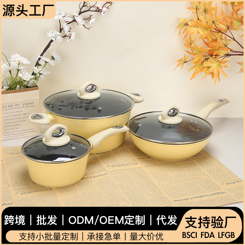 国境を越えた鍋セットは鍋にくっつかない花崗岩セット家庭用電磁炉ガスコンロの共通炒め鍋12セット