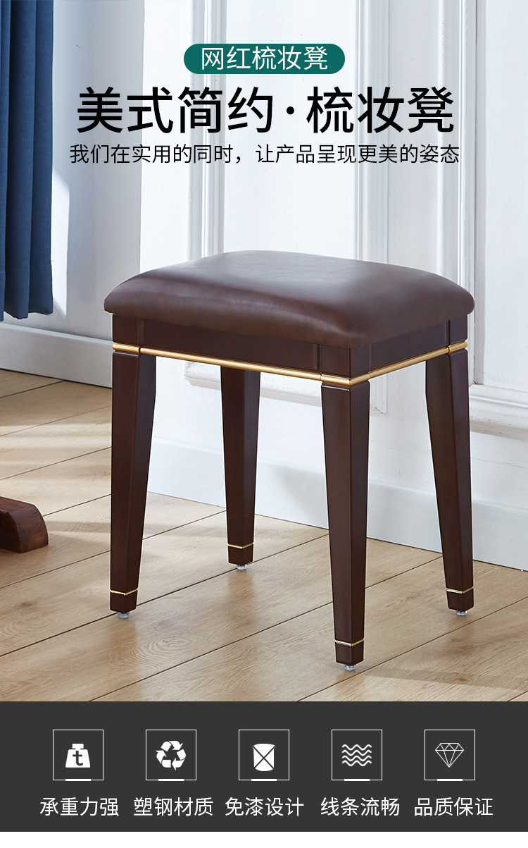 美式化妆椅欧式梳妆台凳子中式古典家用小方凳古筝钢琴凳单人仿古