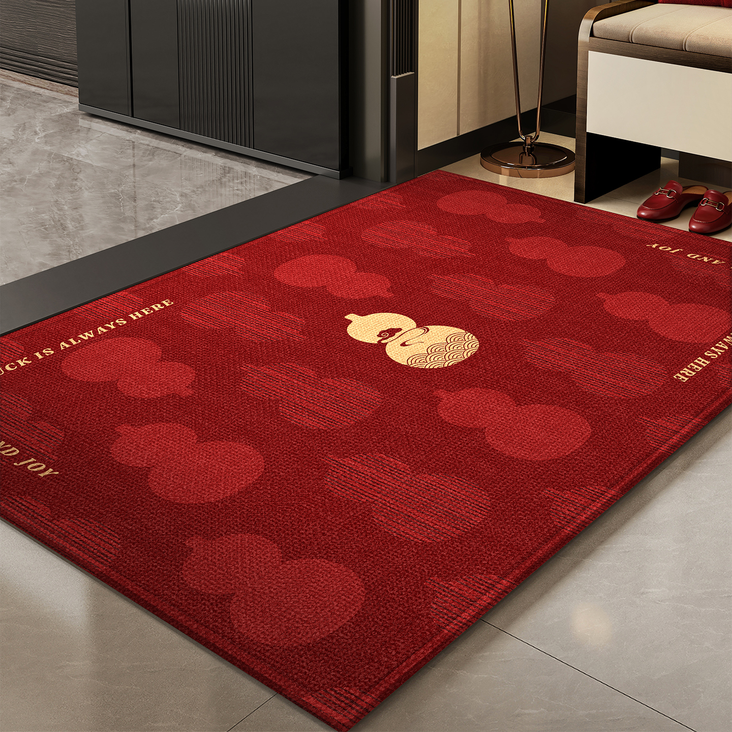 新中式红色出入平安入户门地垫进门耐脏防滑易打理脚垫可裁剪地毯