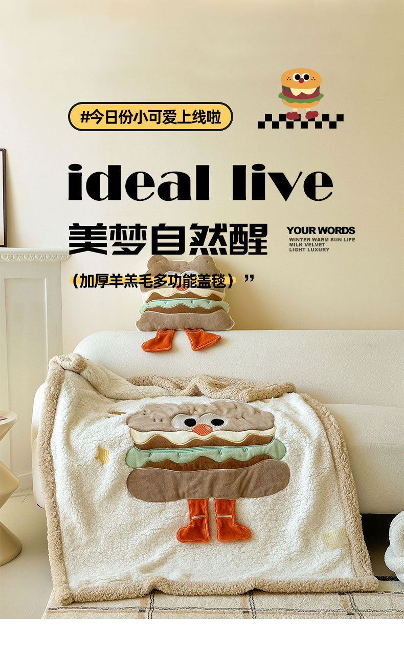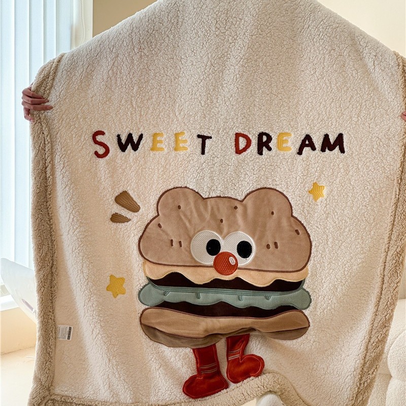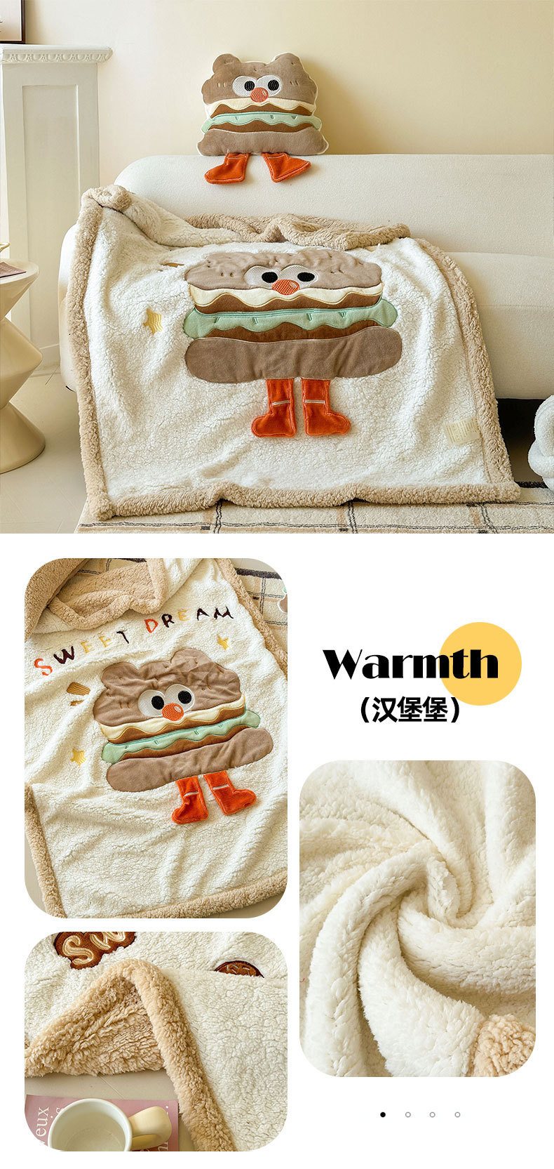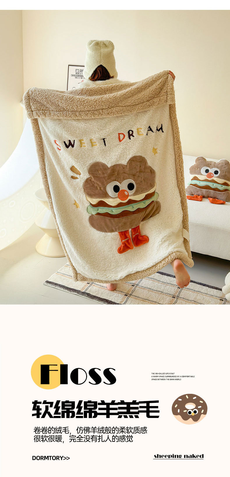 Ins漫画子羊絨毯ソファー絨毯一人二重厚いサンゴ絨毯オフィス昼休み毛布