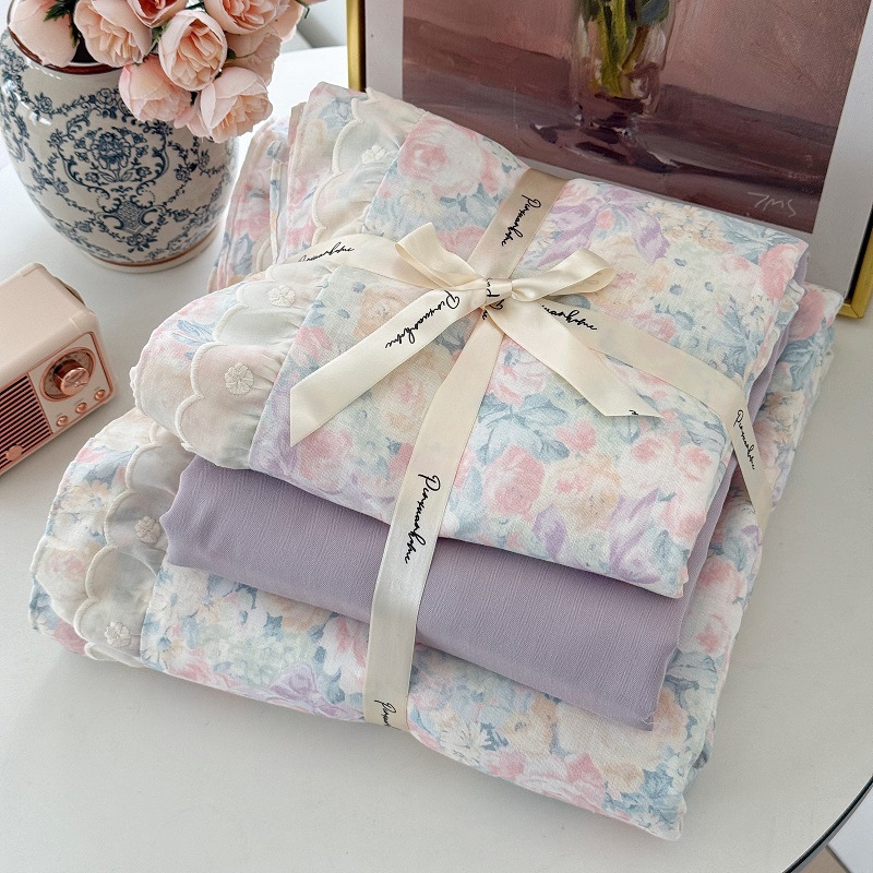 フランス綿二重糸四点セット純綿二重レース小清新シーツ布団カバー寝具