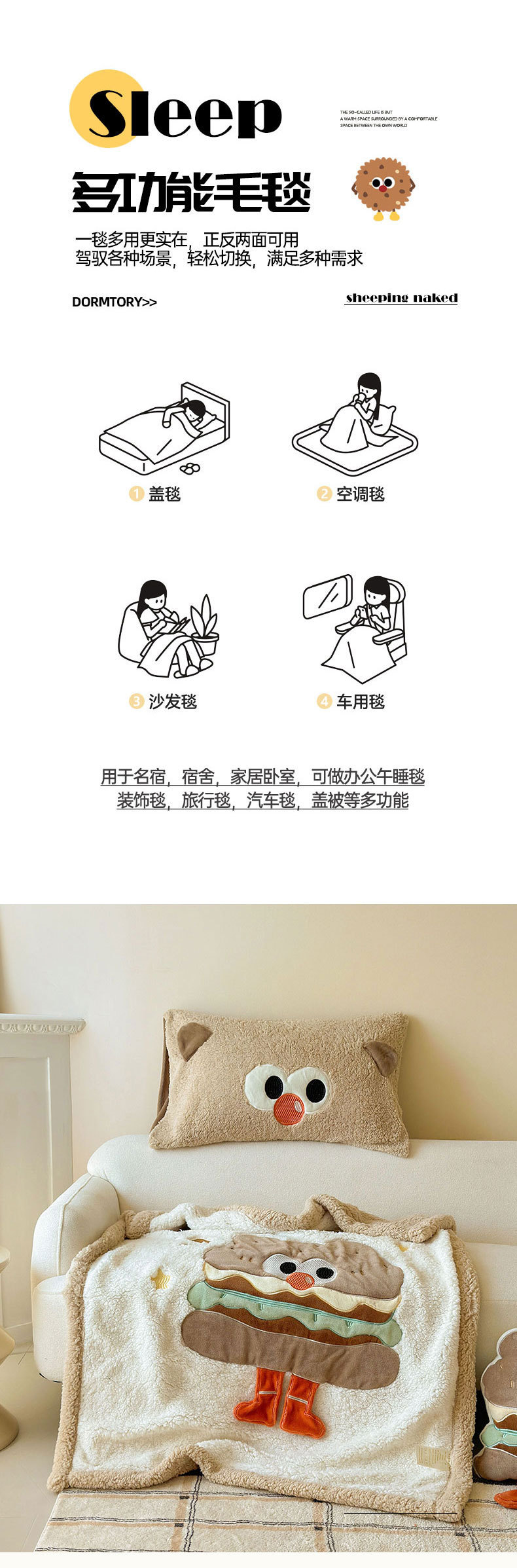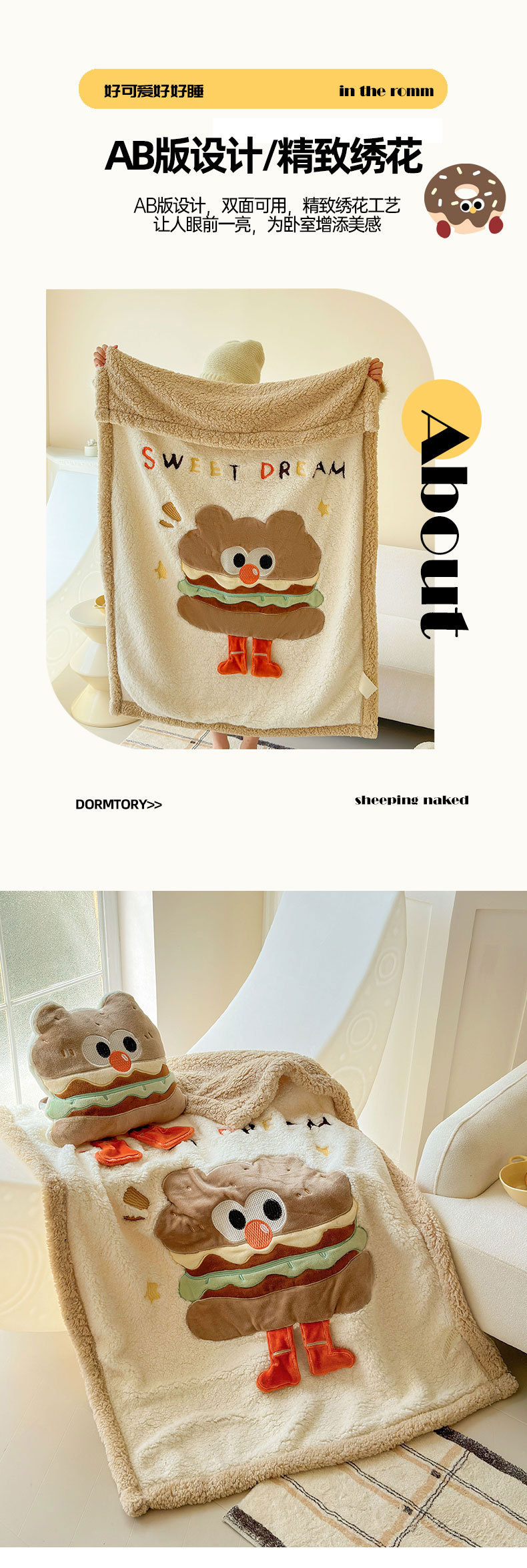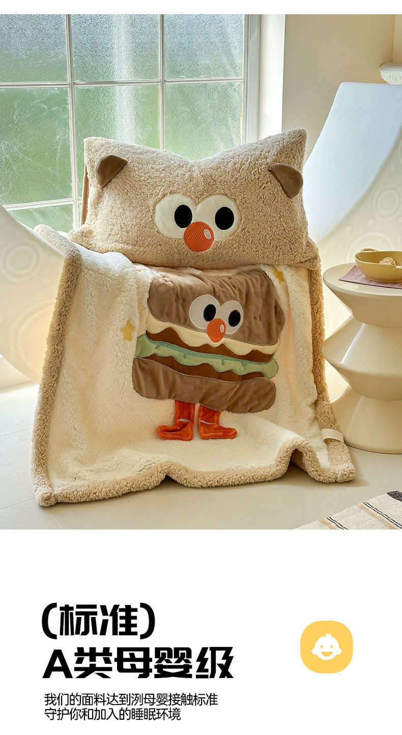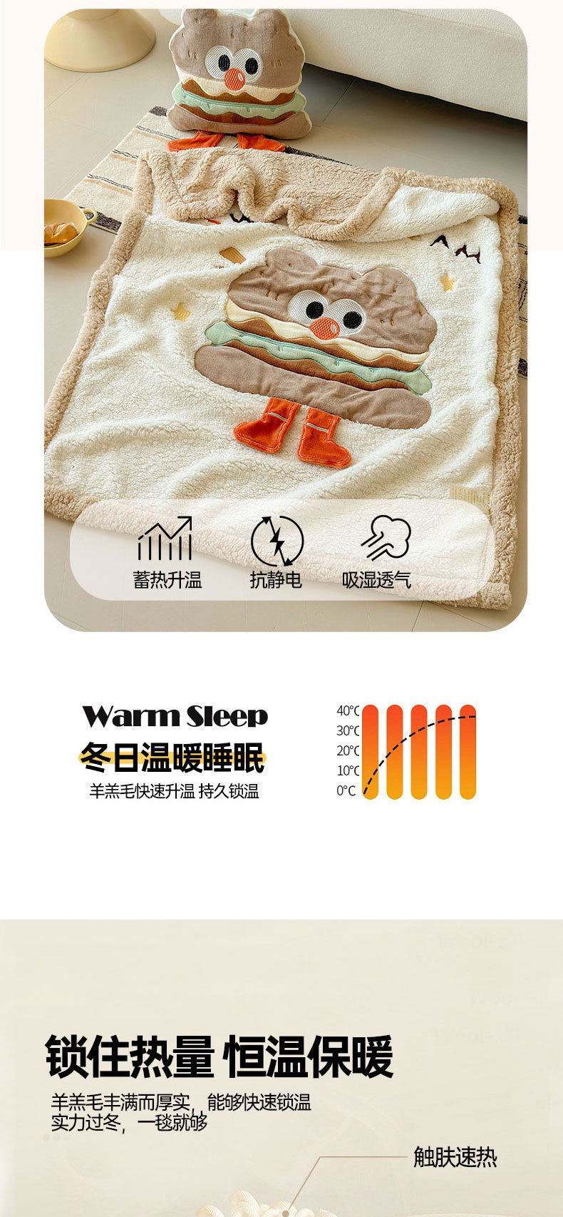 卡通ins秋冬加厚羊羔绒毯儿童加厚绒毛毯子抱枕幼儿园午休毯盖毯