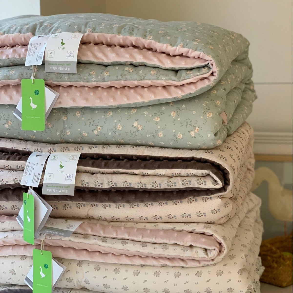 韓国風小花柄綿100%、シングル・ダブル対応、洗濯機洗い可能、豆豆春秋掛け布団、厚手保温冬掛け布団、安心毛布芯