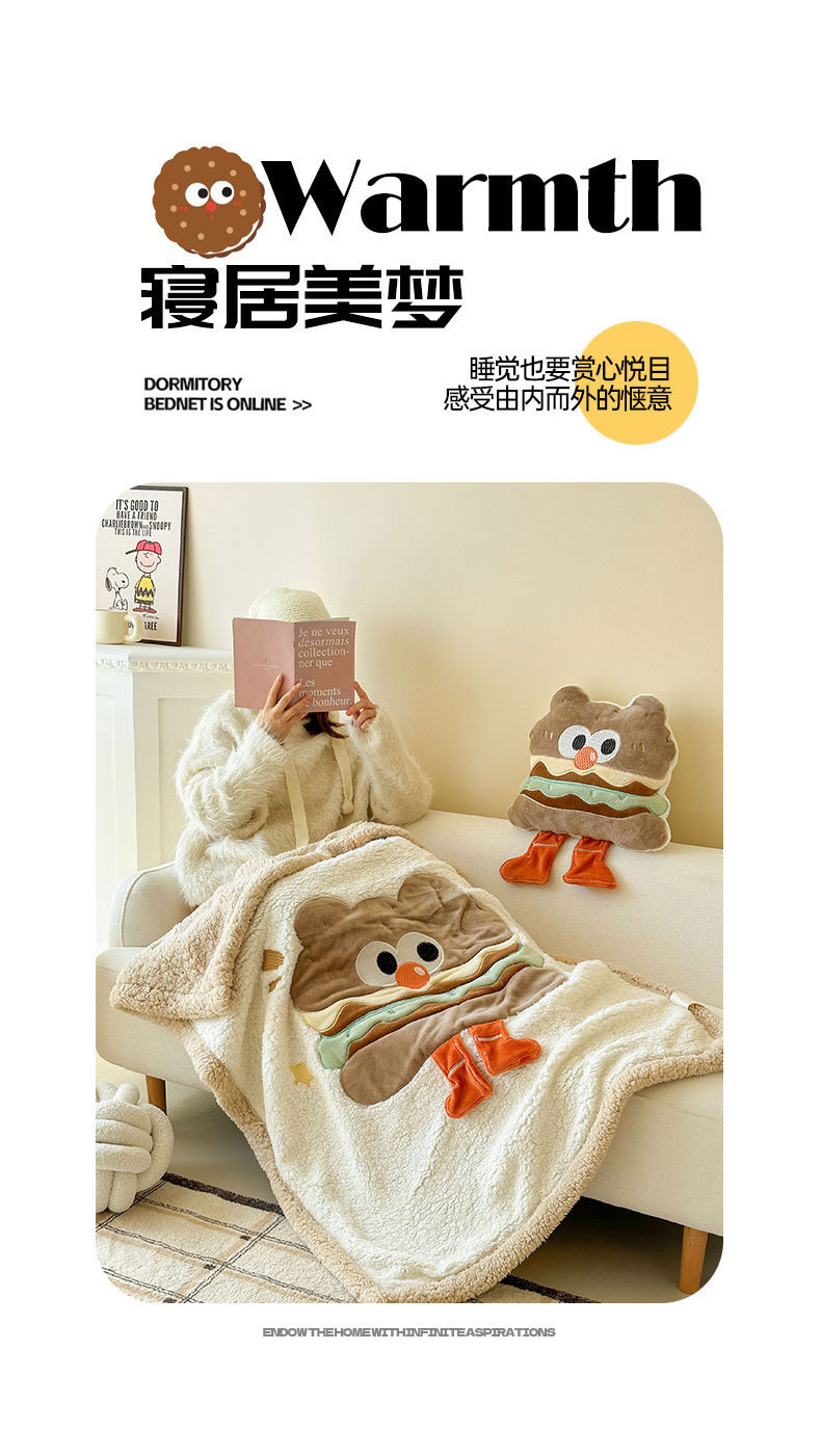 可爱小熊卡通羊羔绒毛毯沙发盖毯双层加厚珊瑚绒办公室午休小毯子
