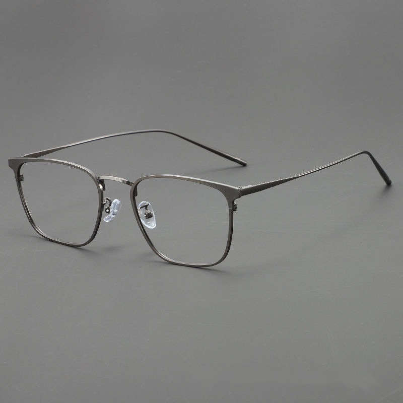 男性と女性のための金属合金のトレンディなスクエアフレームメガネ、パーソナライズされたフラットアイ、近視防止ブルーライトフレームを装備可能、新しい美白