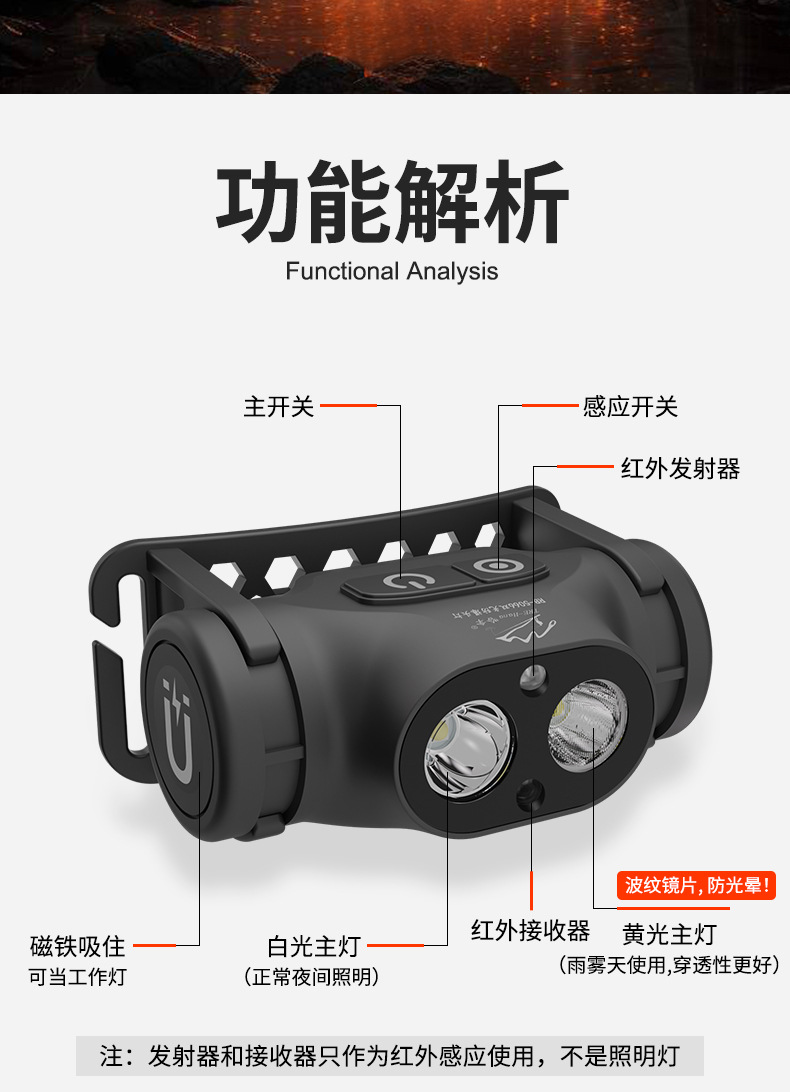 多機能防爆ヘッドライト強い光長い航続リチウム電気USB充電可能LED屋外小型軽量誘導ヘッドライト