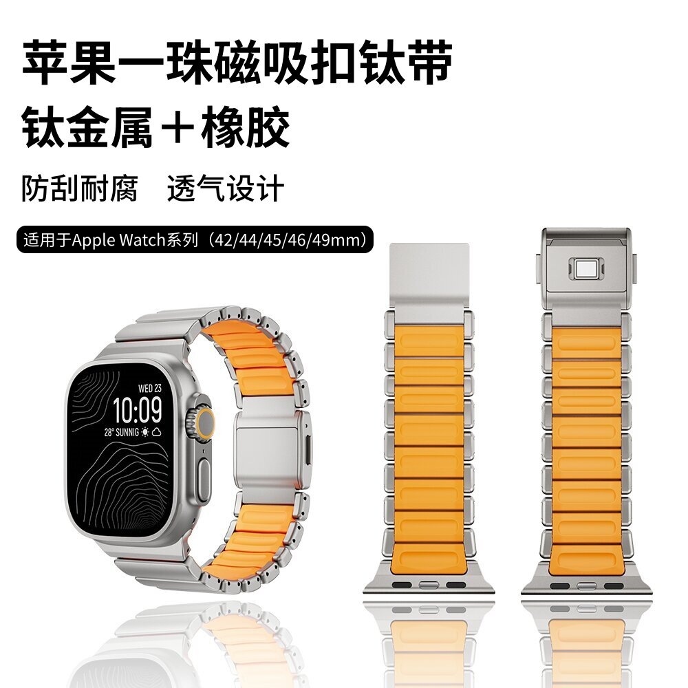 适用AppleWatch纯钛手表带Ultra2/3钛合金一珠磁吸扣纯钛苹果手表