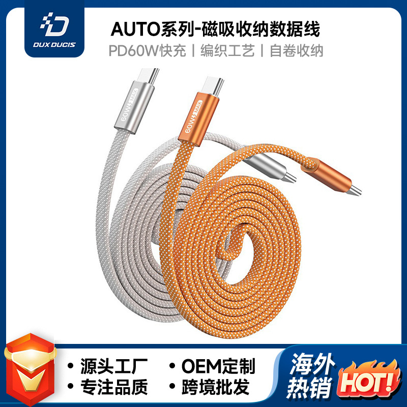 USB60W磁吸款收纳数据线type-c快充线 27W苹果编织充电线跨境批发