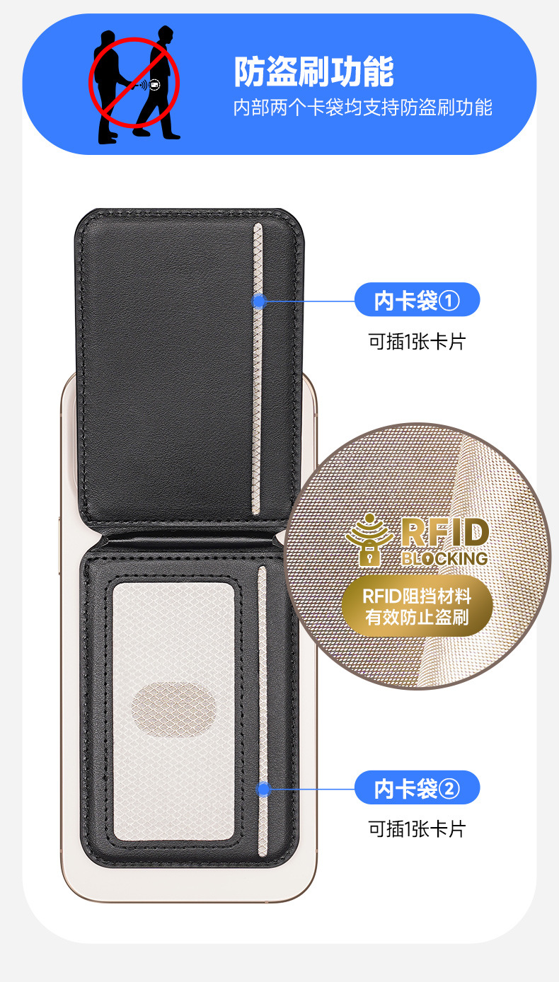 适用于magsafe磁吸支架卡包 对吸插卡支架卡套 插卡磁吸手机支架