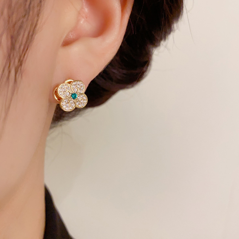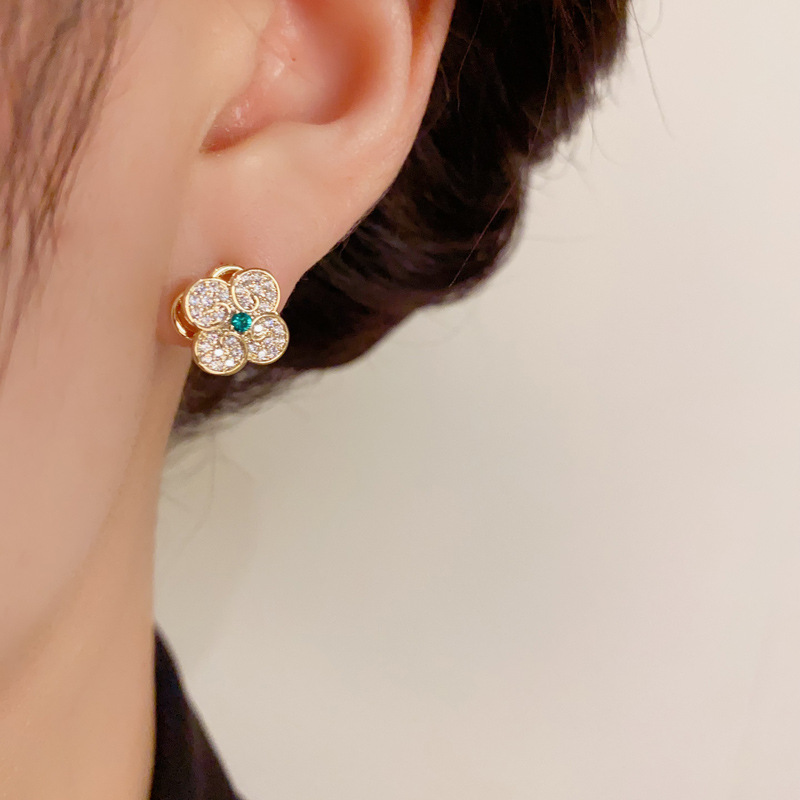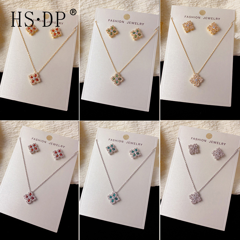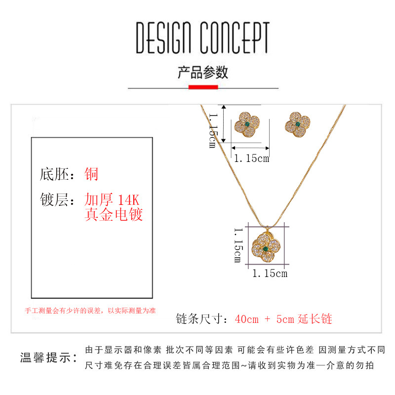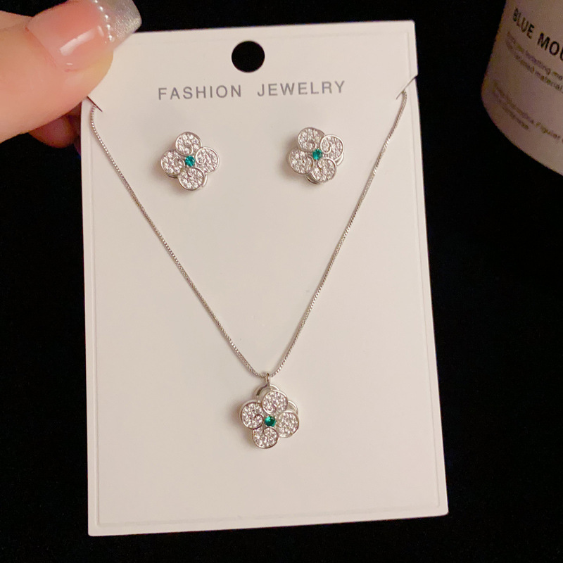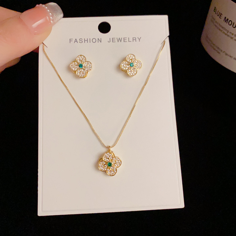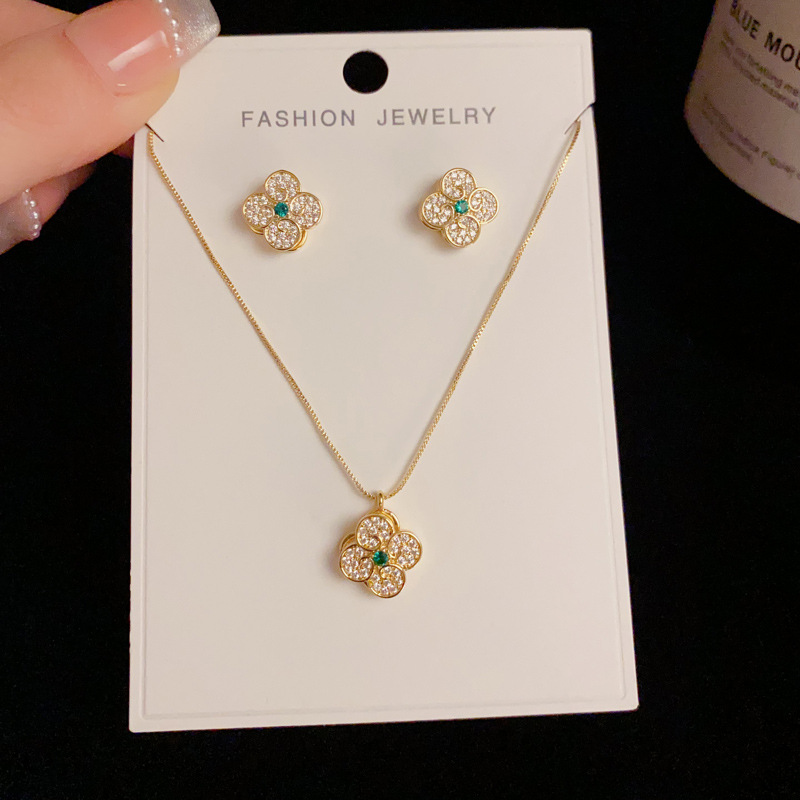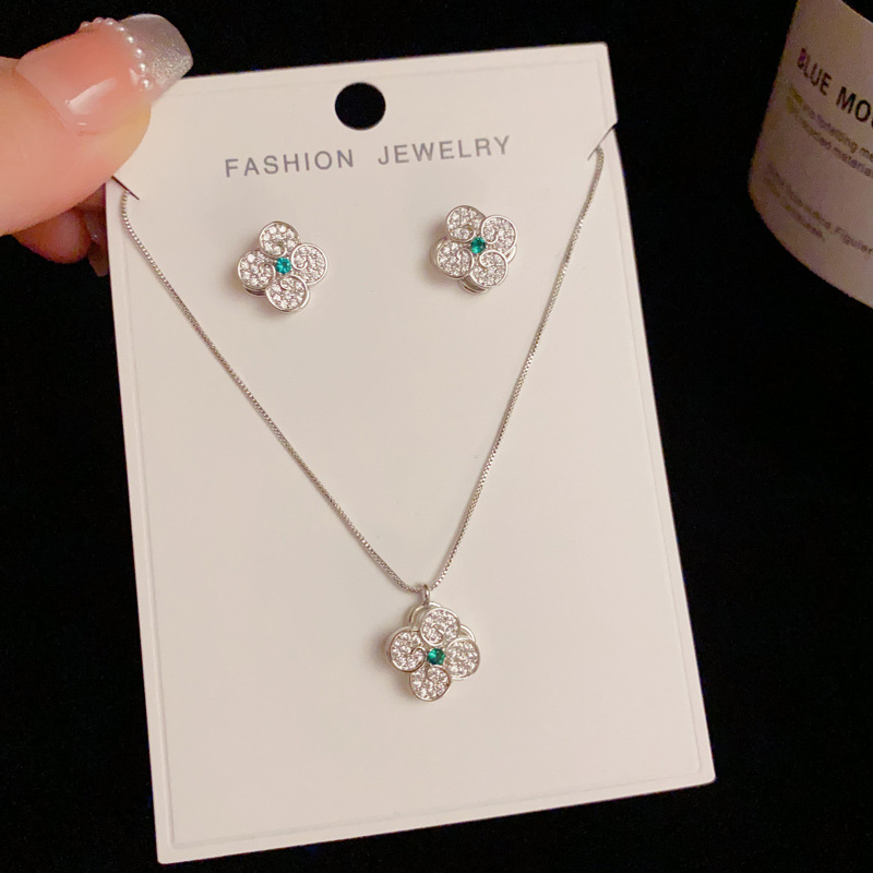秋冬新款轻奢时尚高级感锆石四叶花套装项链精致小巧百搭超闪耳环