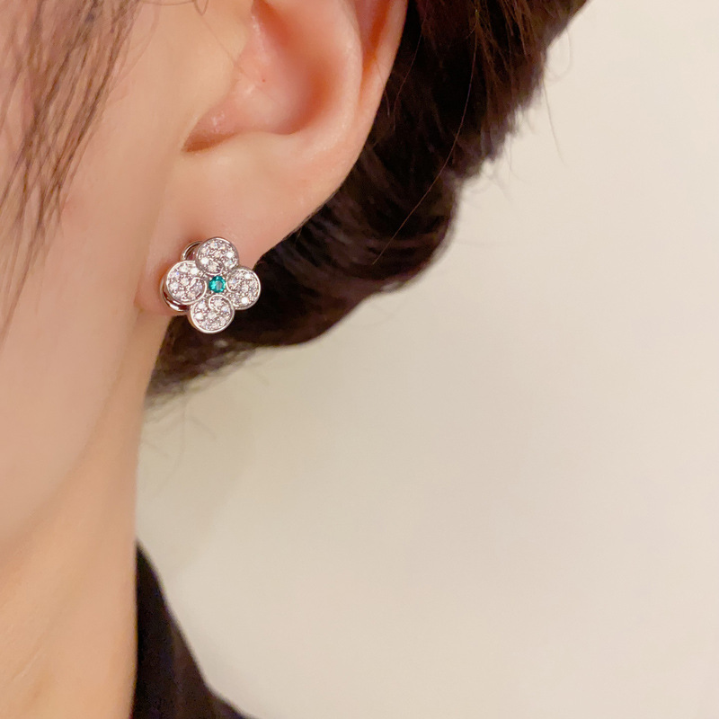 ネット赤高級感冷たい風シンプルな超フラッシュドリルピアスs925銀針小衆デザイン感ファッションイヤリング女