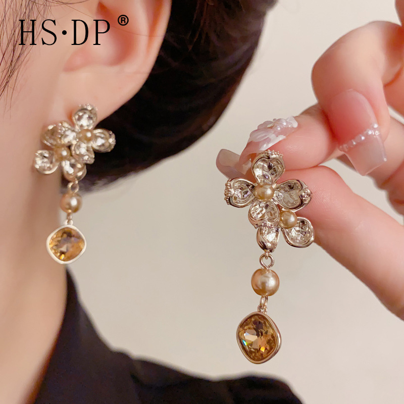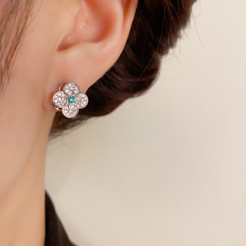 法式时尚轻奢百搭锆石镂空珍珠花瓣耳扣个性气质简约超闪耳坠批发
