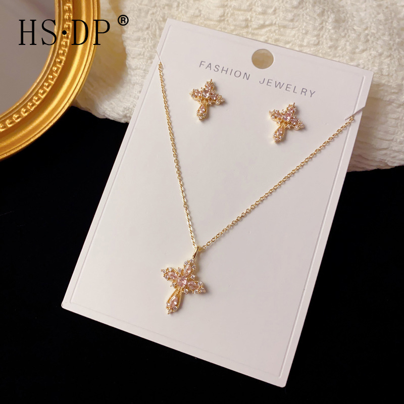 日韩轻奢个性微镶满锆十字架套装项链精致时尚百搭高级感超闪颈链