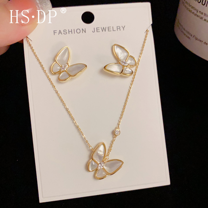 大衆のファッションは軽くて豪華で、清新な貝の母の蝶のピアスの2つのセットの組み合わせのネックレスの気質は組み合わせて卸売りを飾ります。