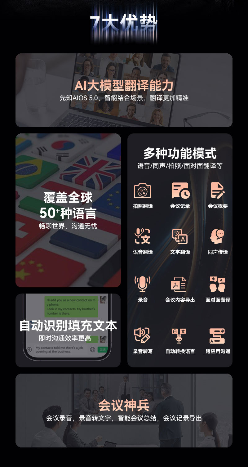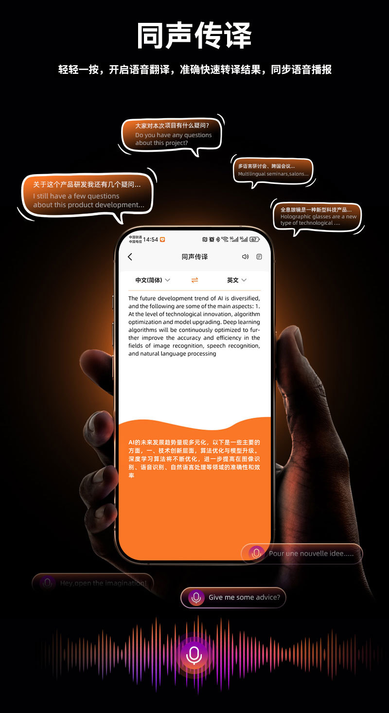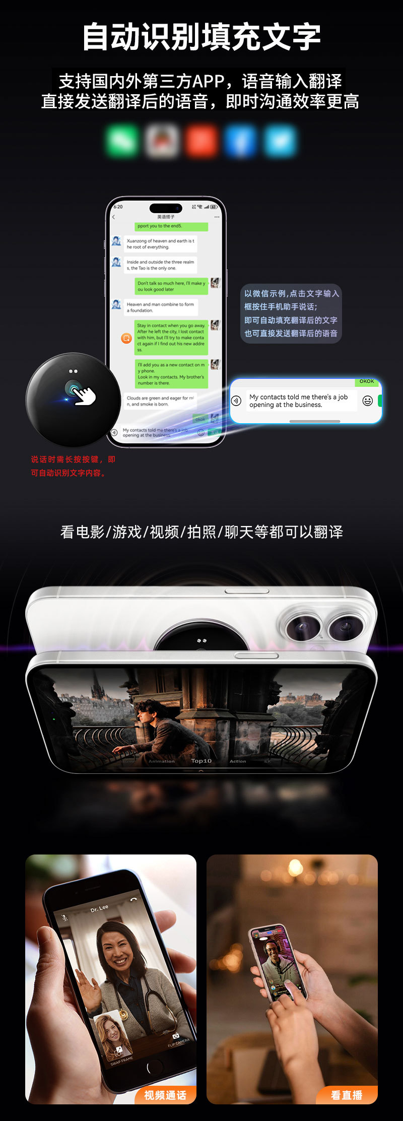 磁吸智能翻译机背贴背夹同声传译50+种语言助手出国智能语音设备