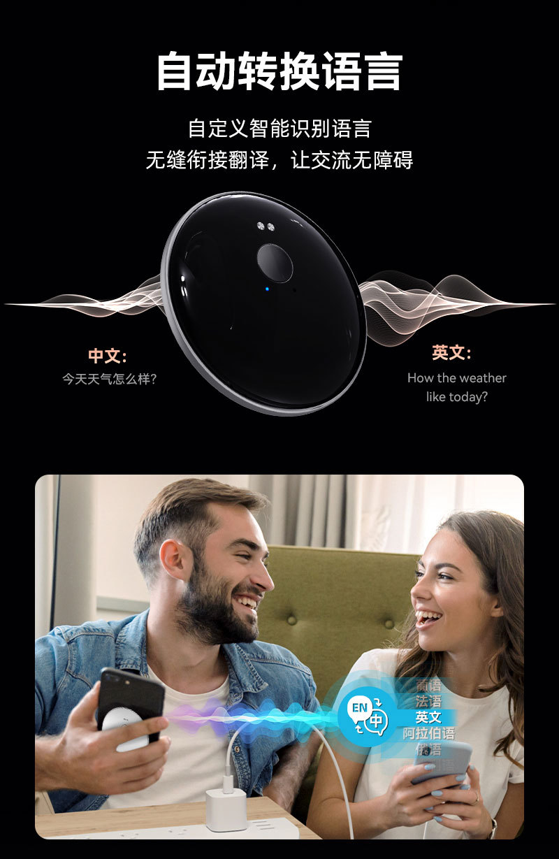 新型スマート翻訳機Ai携帯アシスタント円形多言語超強力マグネット携帯会議アシスタント