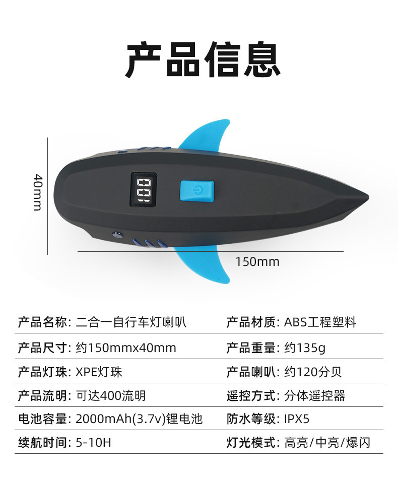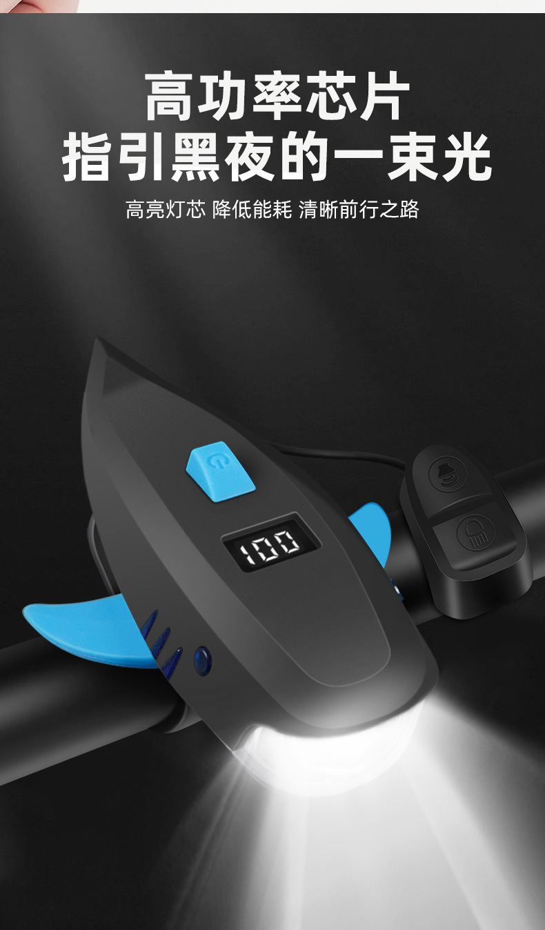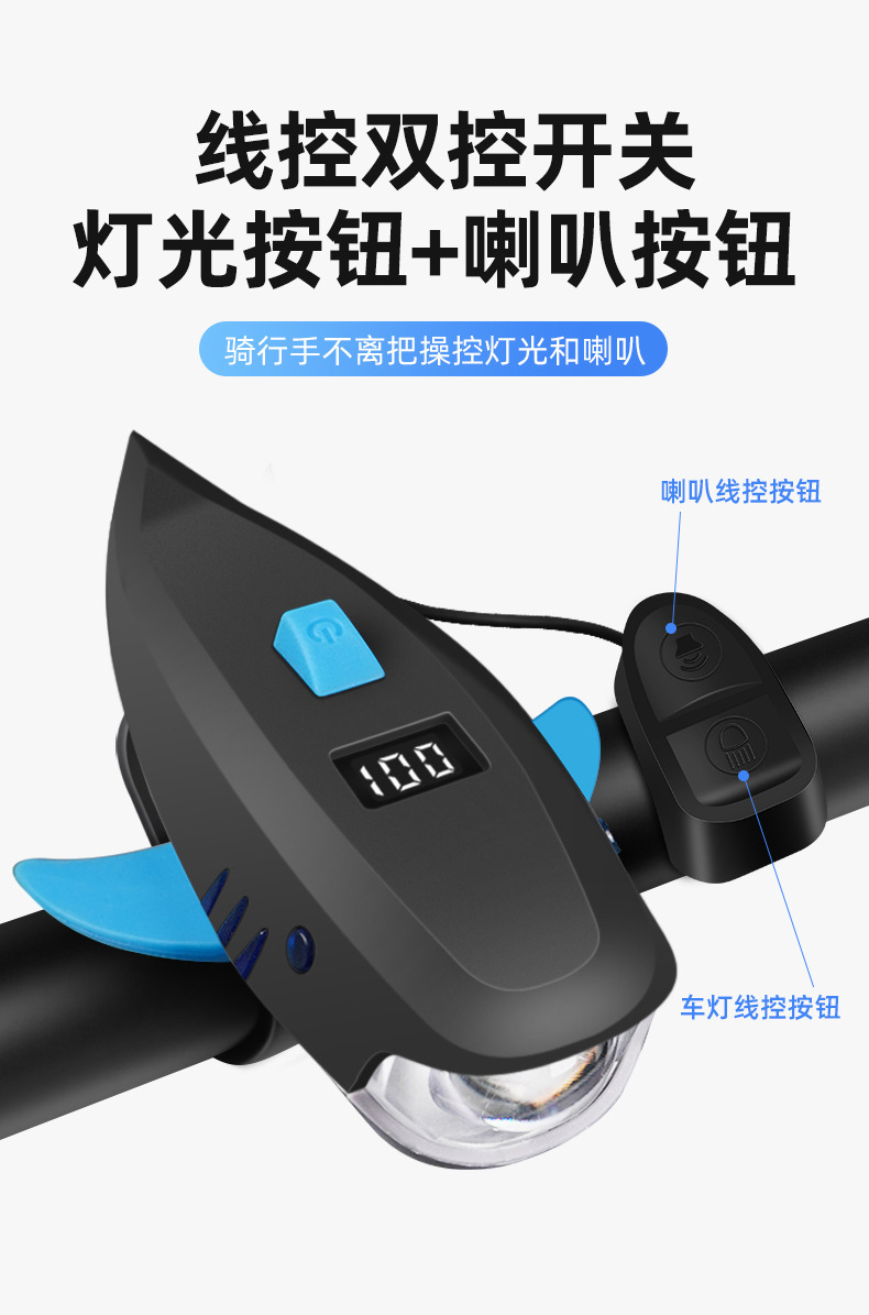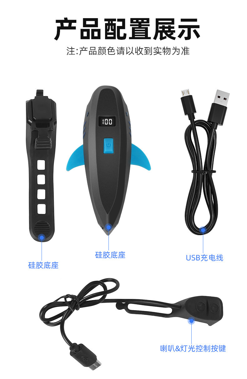 自転車ライト、ヘッドライト、夜間走行用ライト、マウンテンバイク乗用具アクセサリー、子供用サメ超大音量ベルホーン
