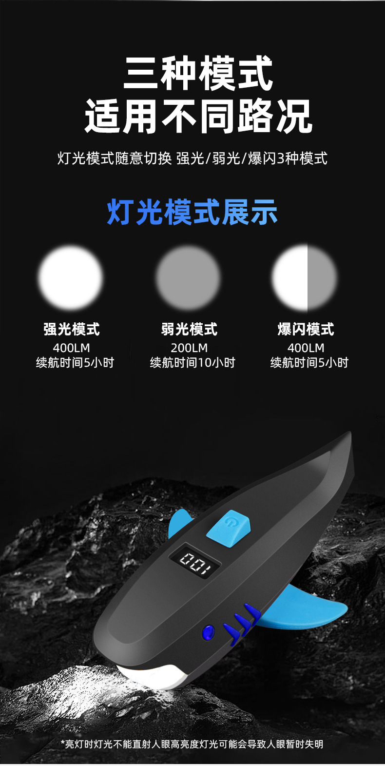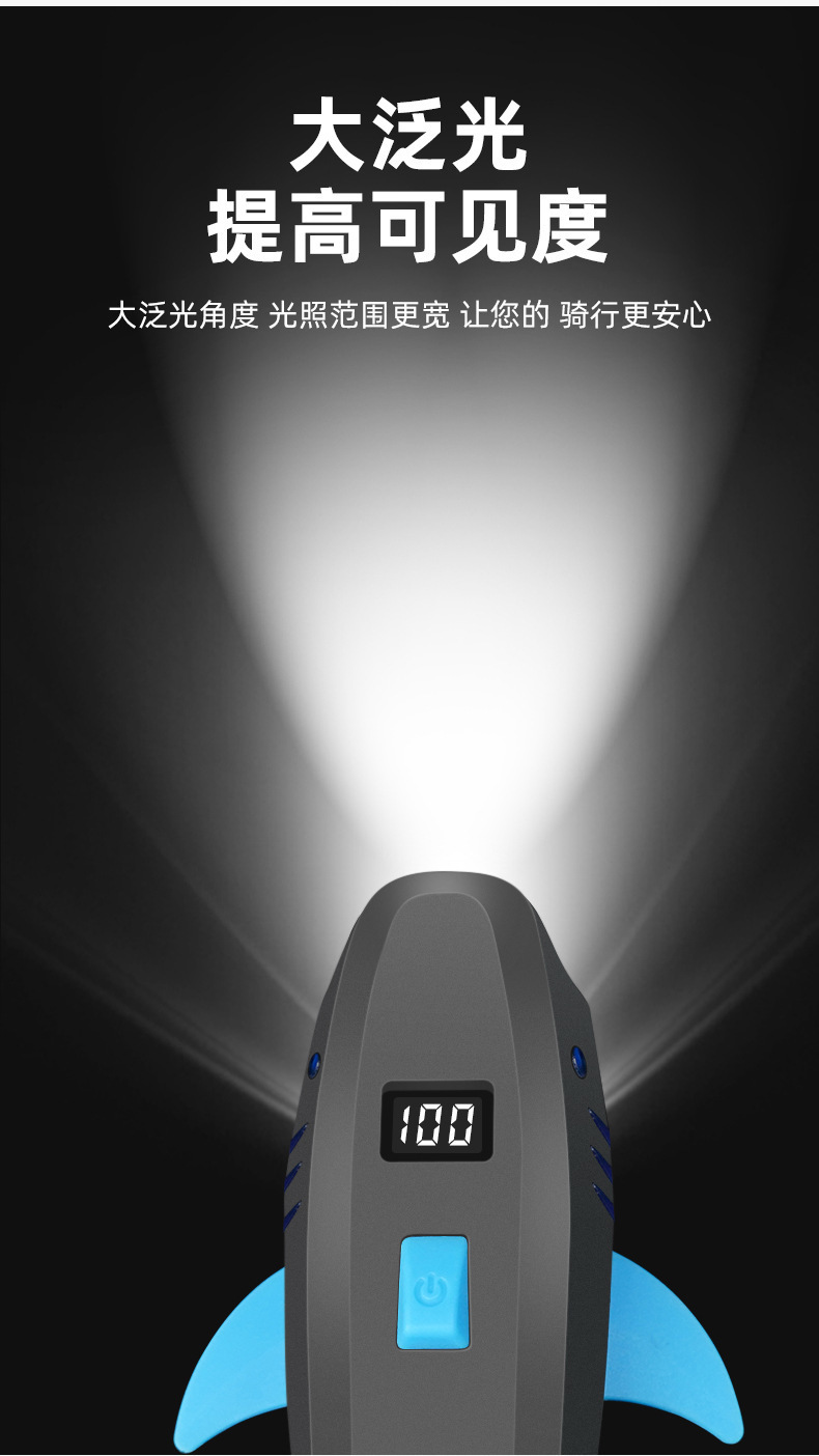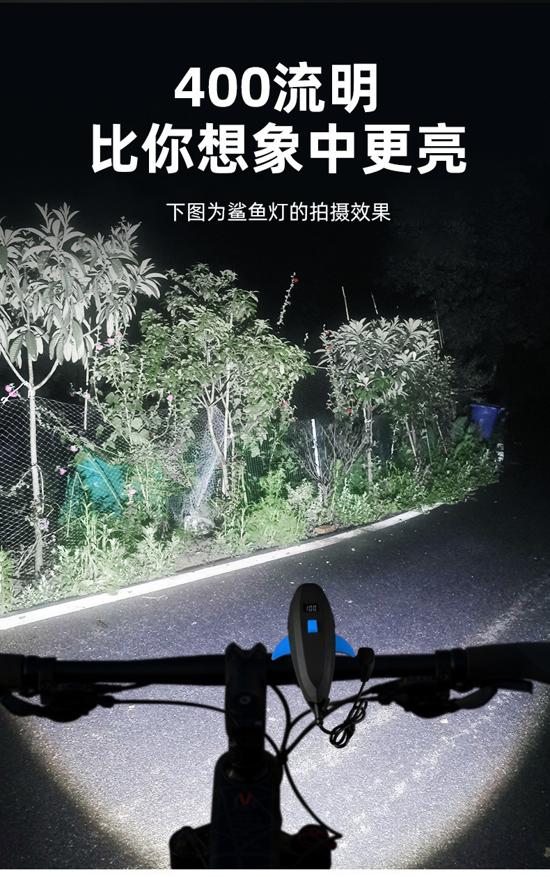 自転車ライト、ヘッドライト、夜間走行用ライト、マウンテンバイク乗用具アクセサリー、子供用サメ超大音量ベルホーン
