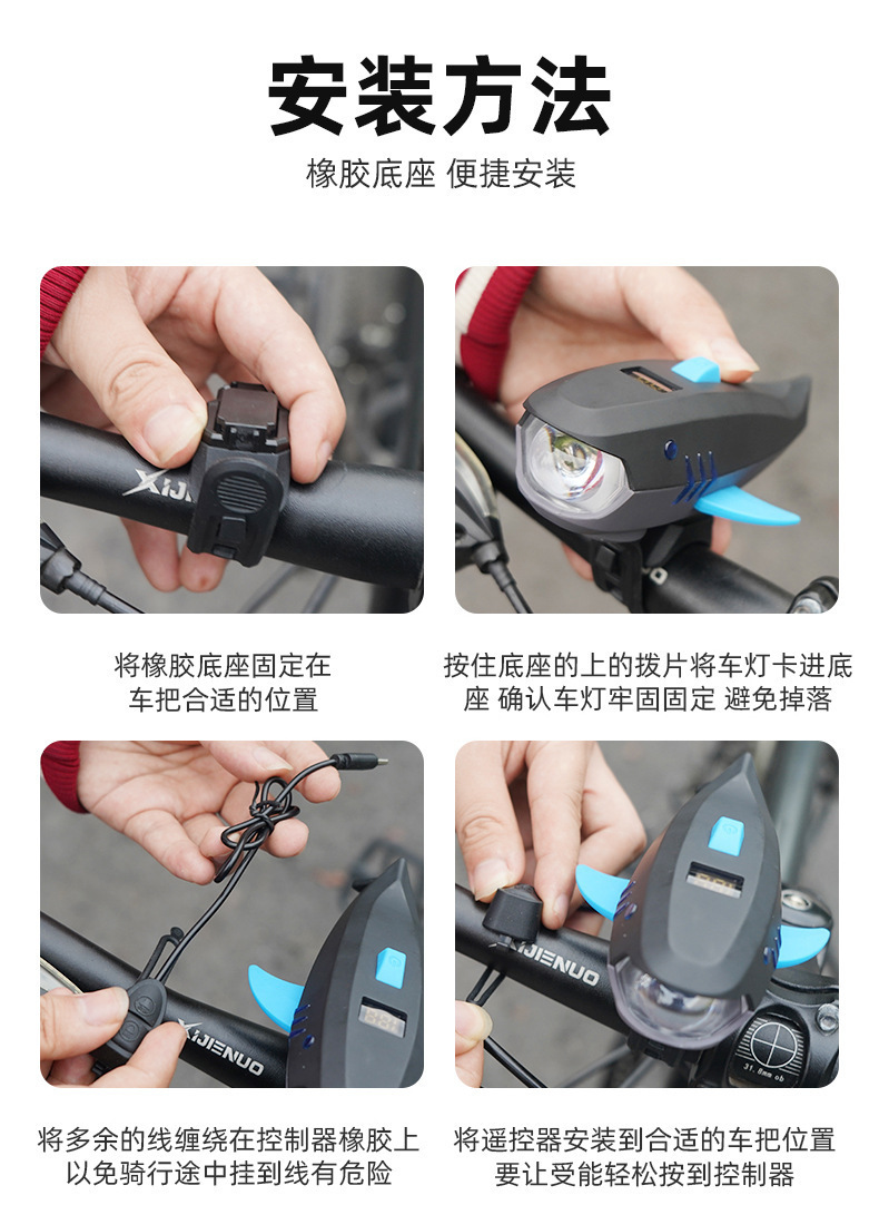 USB充電自転車ラッパヘッドライトマウンテンバイク電気ラッパライトライトクロスボーダーアウトドア電気ラッパベル