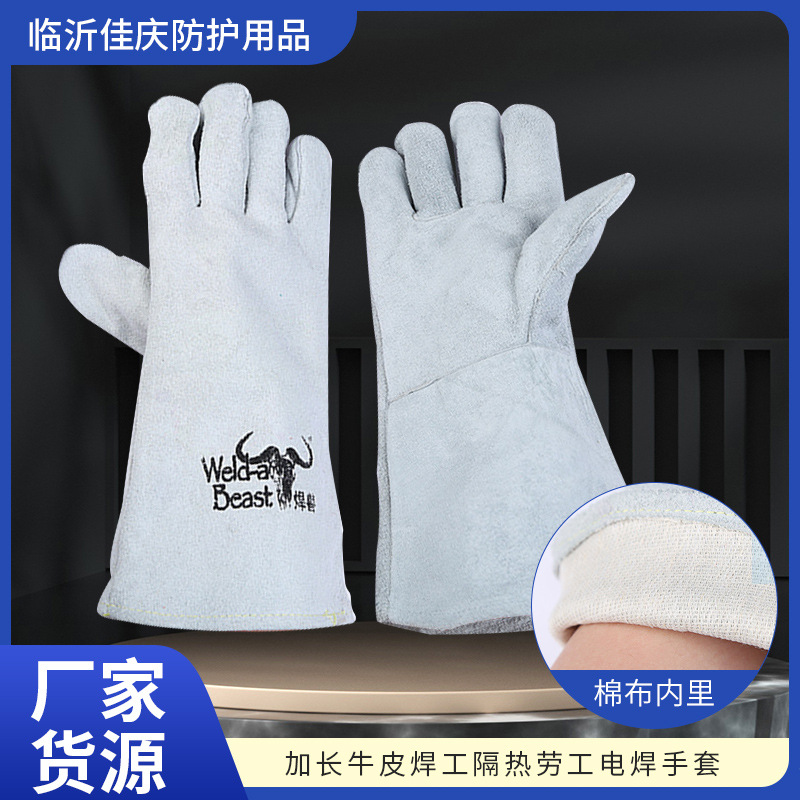 溶接獣4150電気溶接手袋溶接工溶接牛革労働保護手袋牛革断熱難燃延長増厚