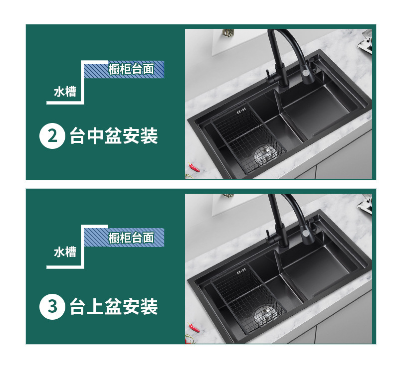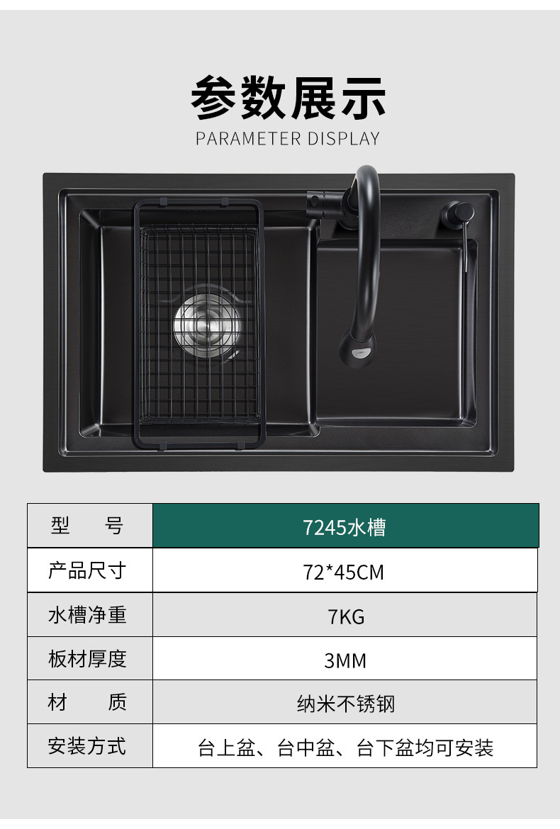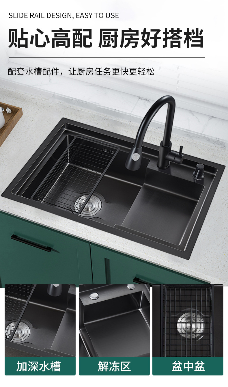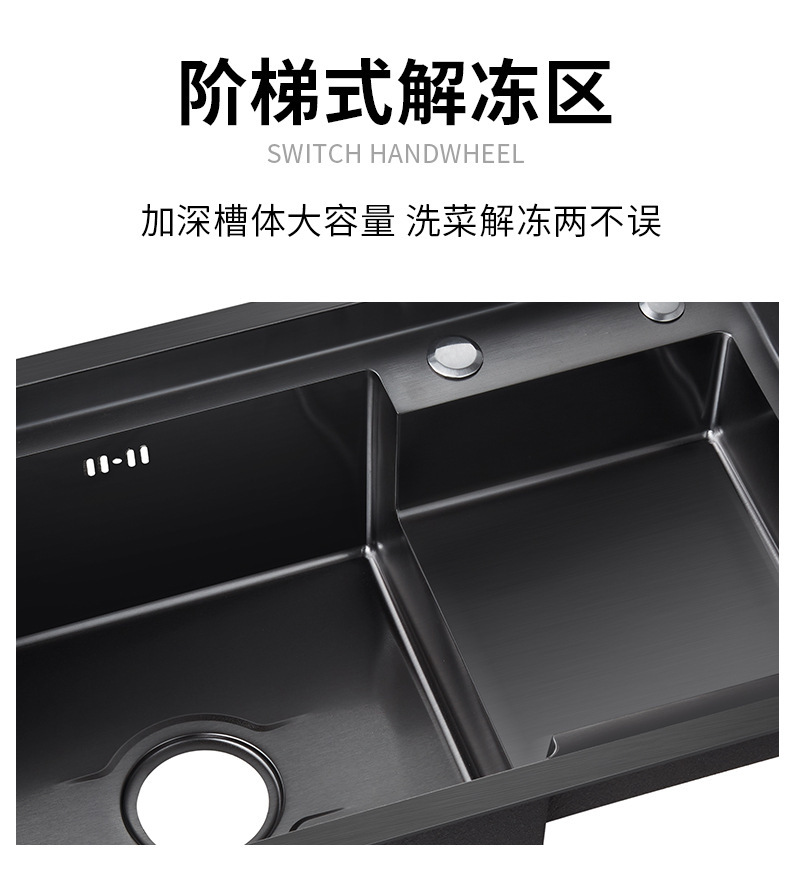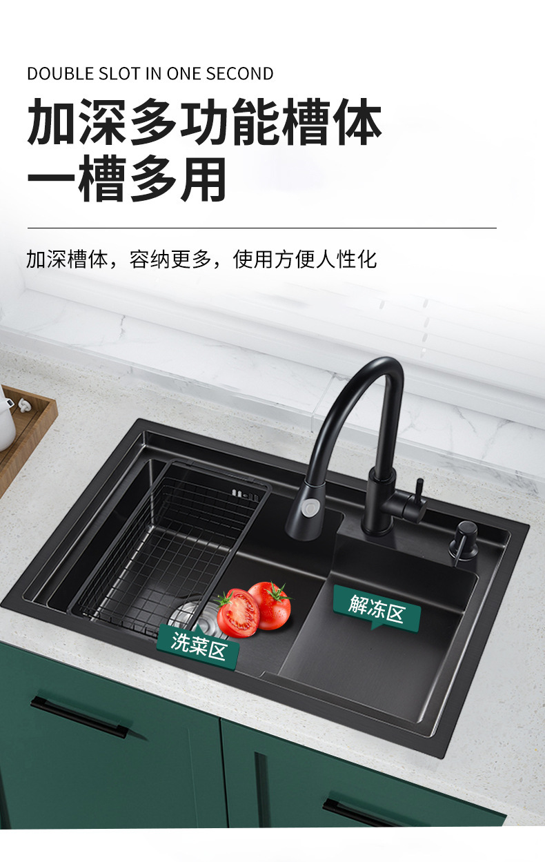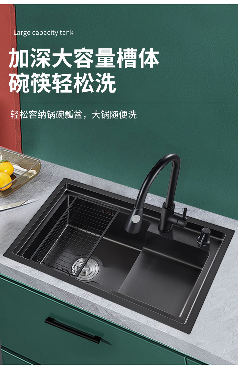 国境を越えた供給キッチン大型シングルスロットステンレス鋼はしご手作りシンク多機能ブラックナノシンクメーカー