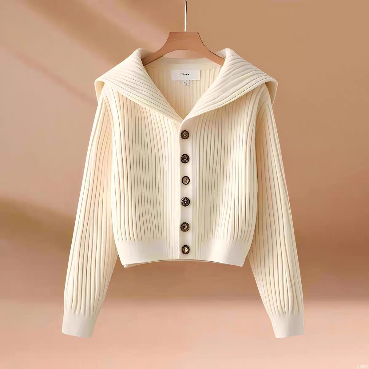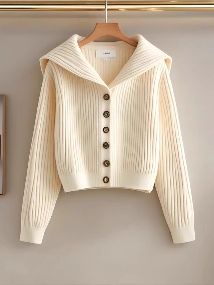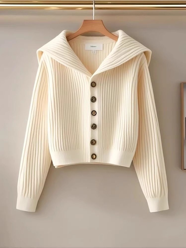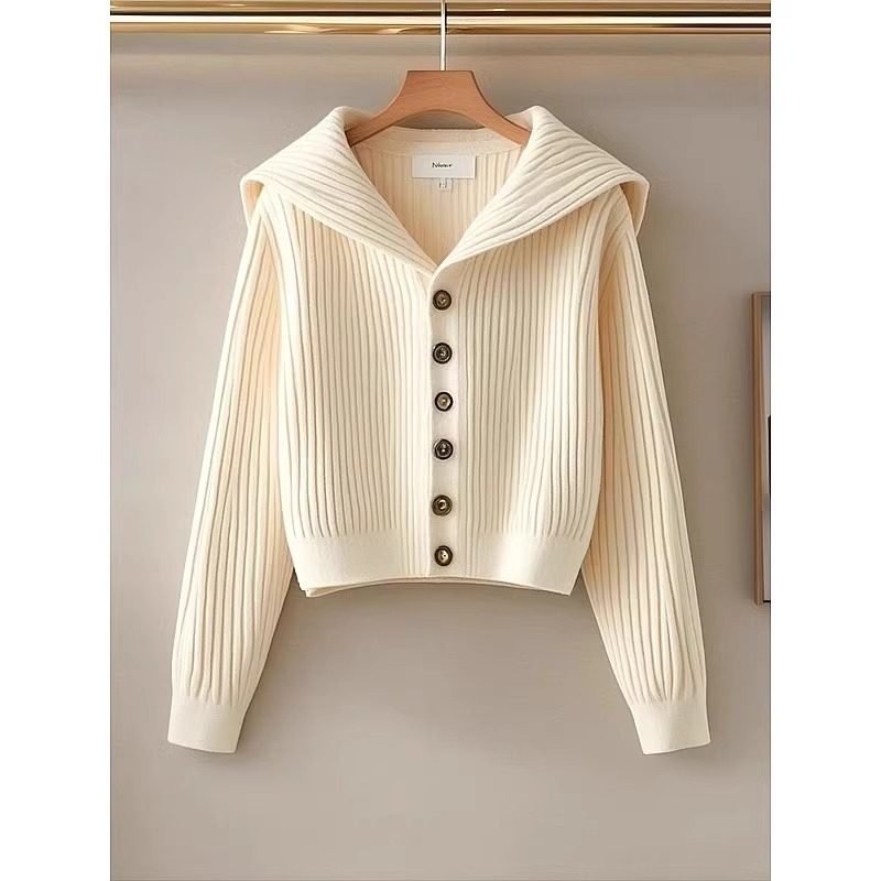 高品質で芸術的な生乳セーター秋と春の新しいネイビーカラーのシングルブレスト長袖ショートニットカーディガン