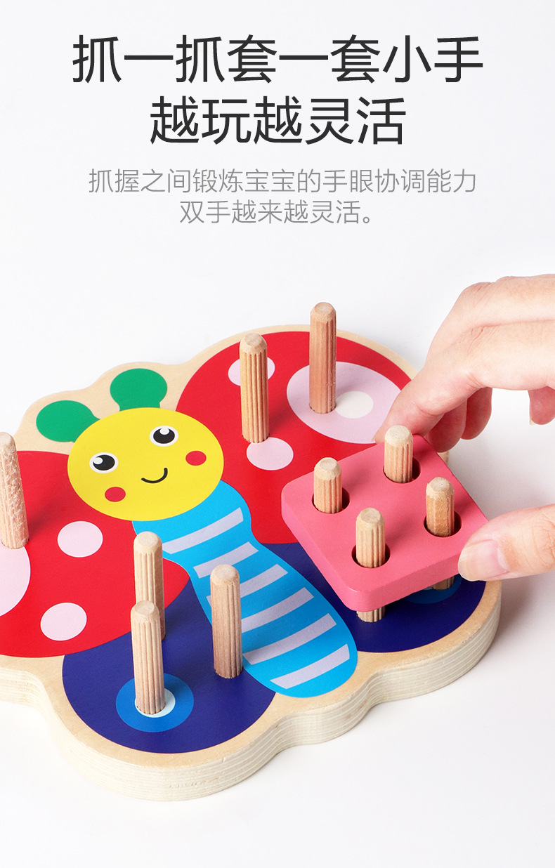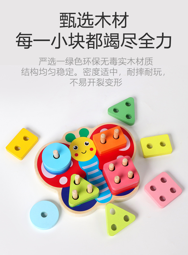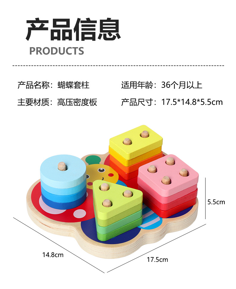 子供の早教の積み木の蝶の4セットの柱の幾何学の形は4セットの柱の木製の益智のおもちゃをペアにします。