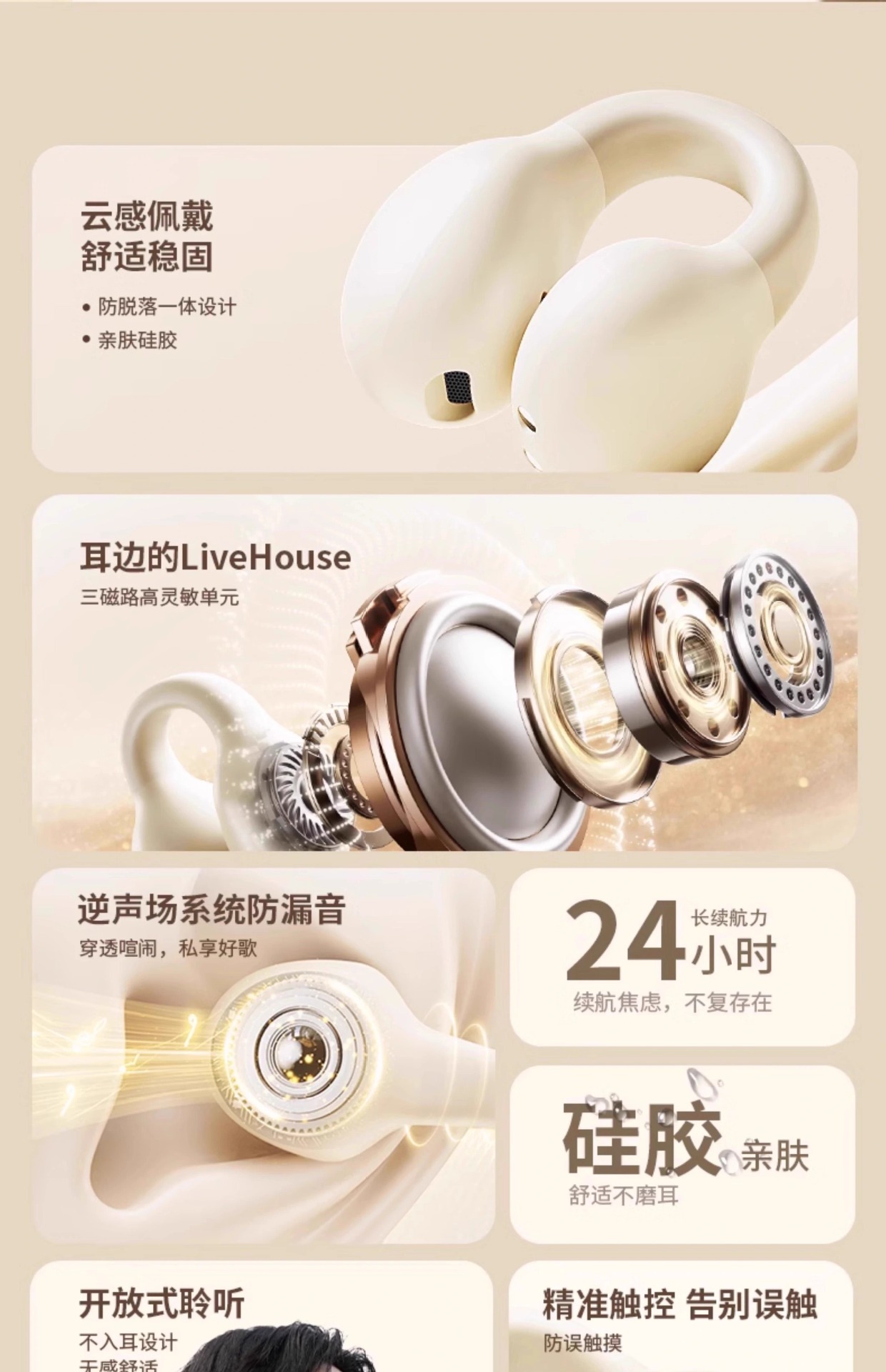 Lenovo联想-EA419气骨传导蓝牙耳机耳夹式适用华为新款不入耳耳夹