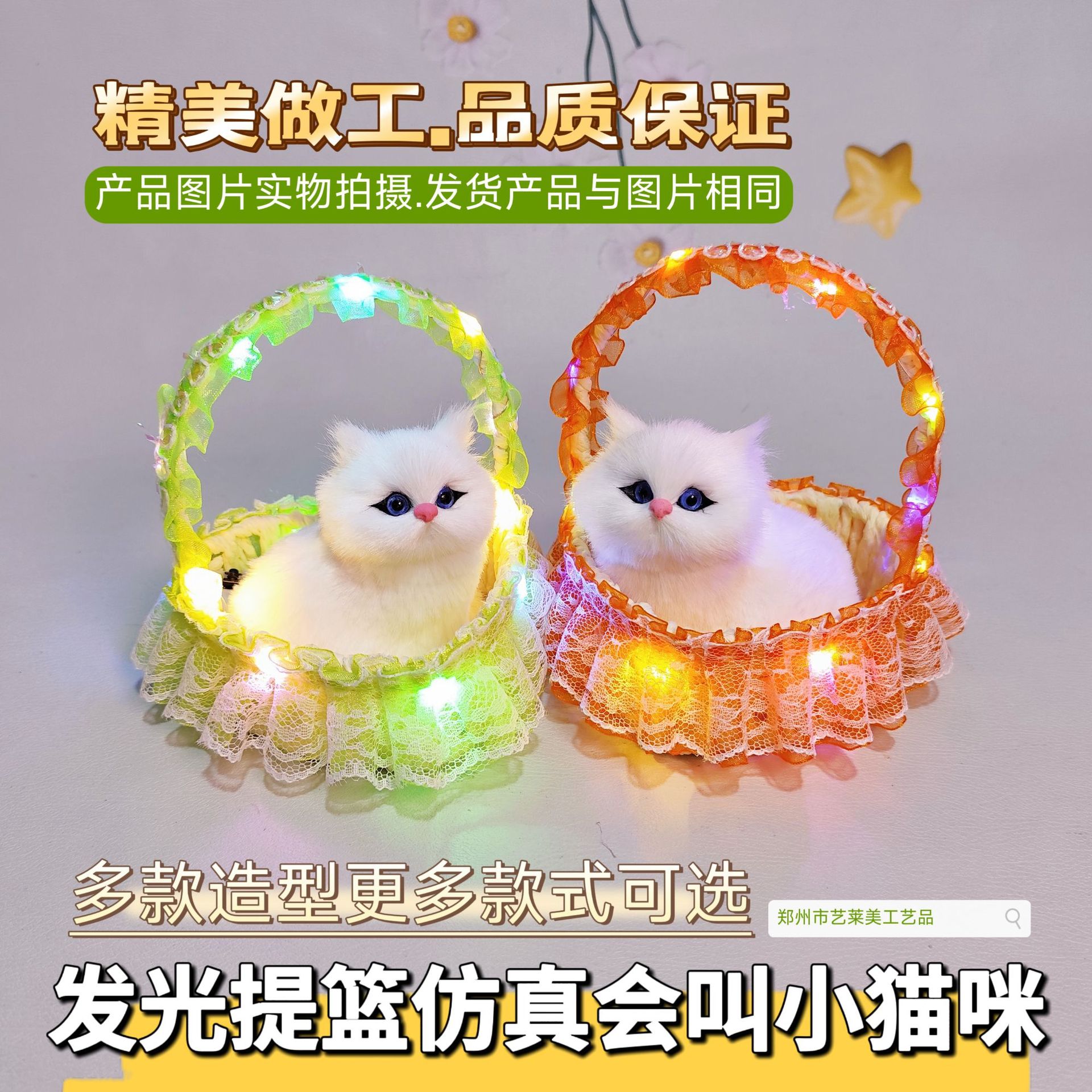 发光小提篮仿真猫咪会叫小猫咪仿真小猫儿童玩具景区摆件花篮猫咪