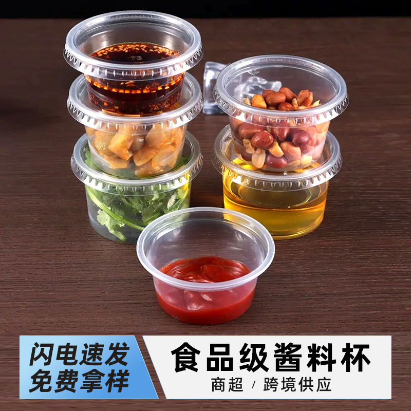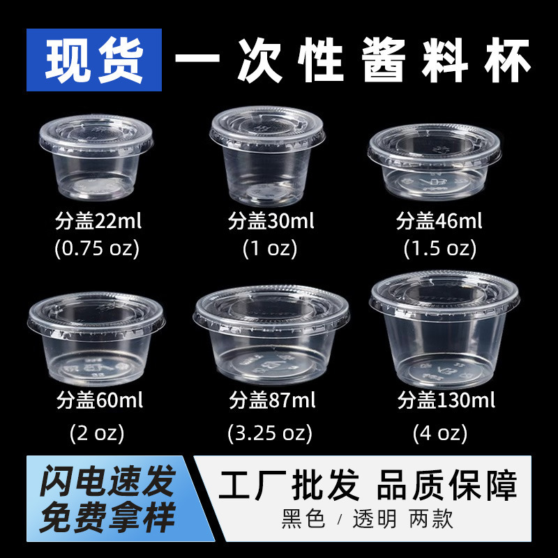 一次性酱料盒1oz/2/3/4安酱料杯密封调料蘸料盒打包小料盒辣椒油
