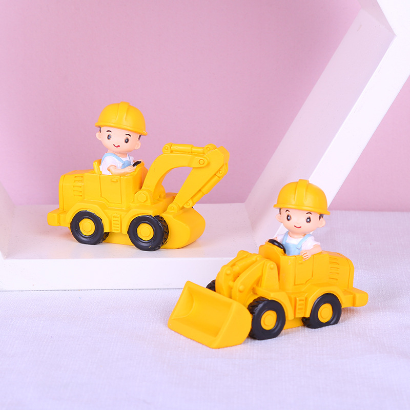 新しい子供のブルドーザーのケーキの装飾の置物の掘削機の男の子の誕生日のケーキの焙煎用品の樹脂の小さい置物