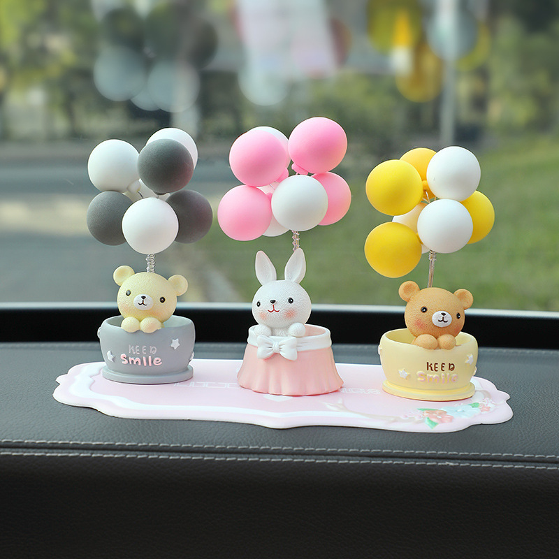 Ins漫画黄色熊ケーキ装飾置物かわいい風船車内アクセサリー自動車車載装飾置物