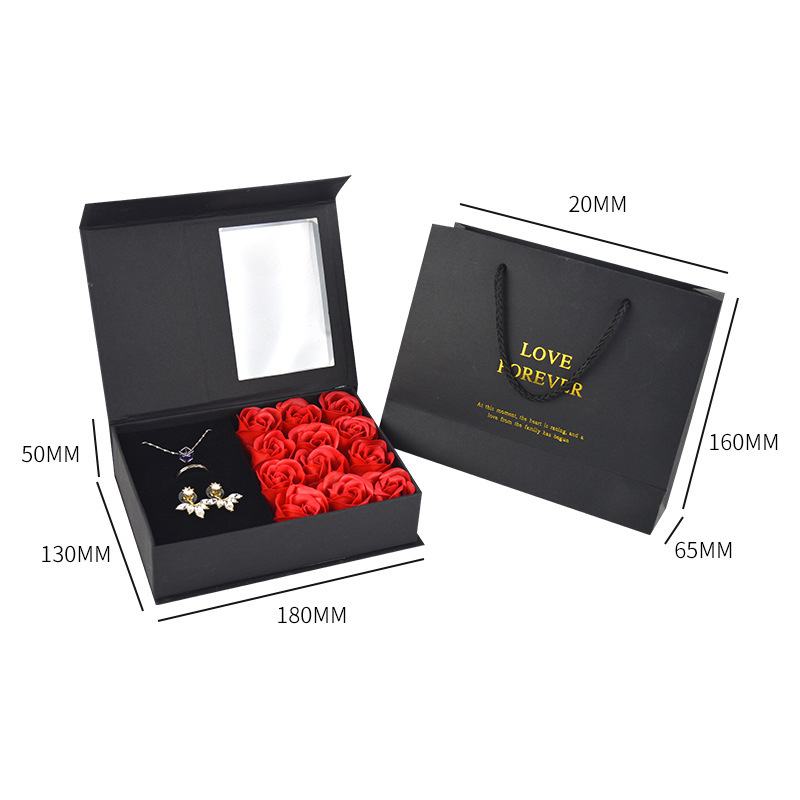 国境を越えたクリエイティブなバレンタインデーギフト、指輪、ネックレス、バラのジュエリーボックス、窓付きギフトボックス、窓付き石鹸の花飾り