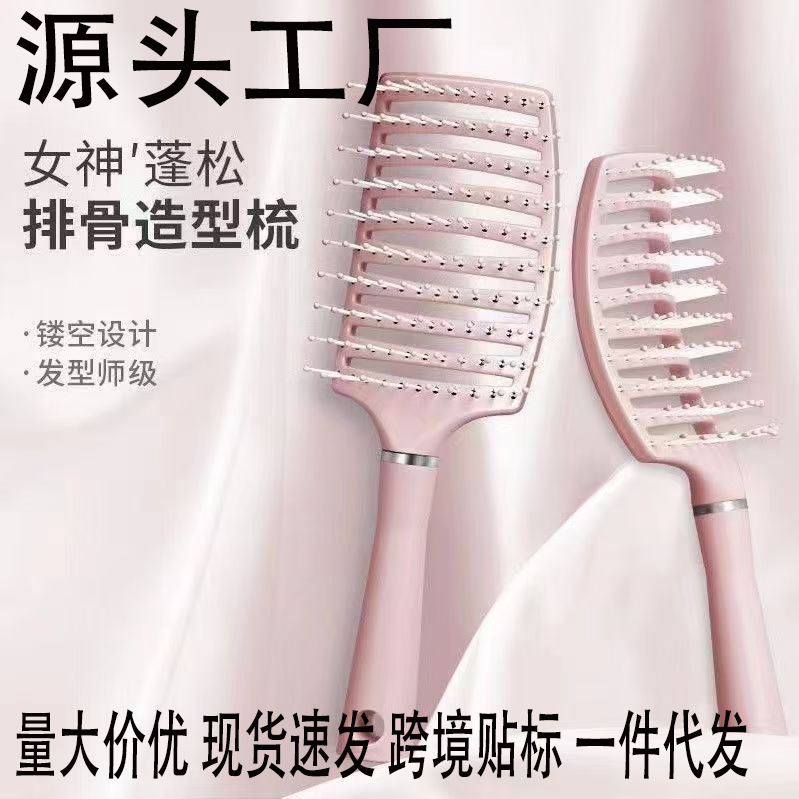 排骨梳女士长发专用高颅顶头发蓬松神器吹发型造型头梳镂空大弯排