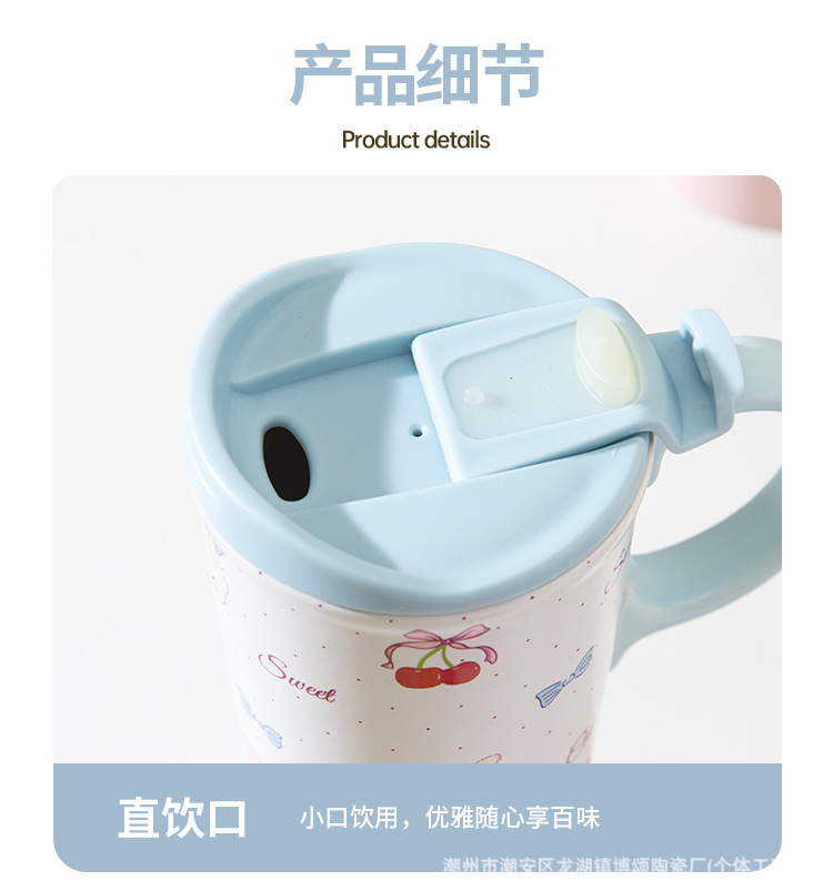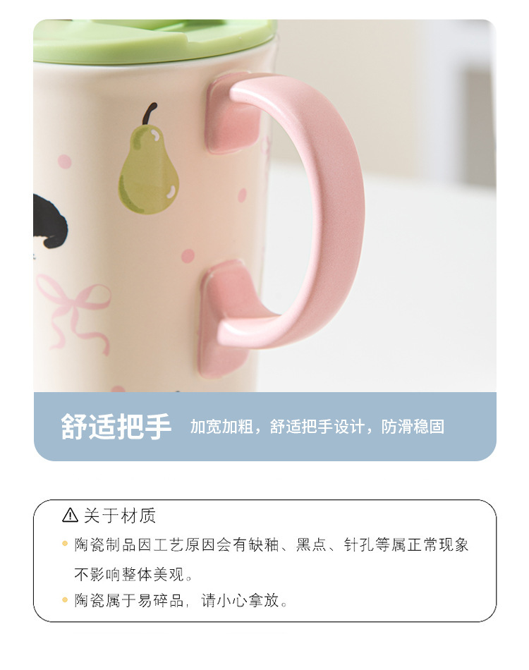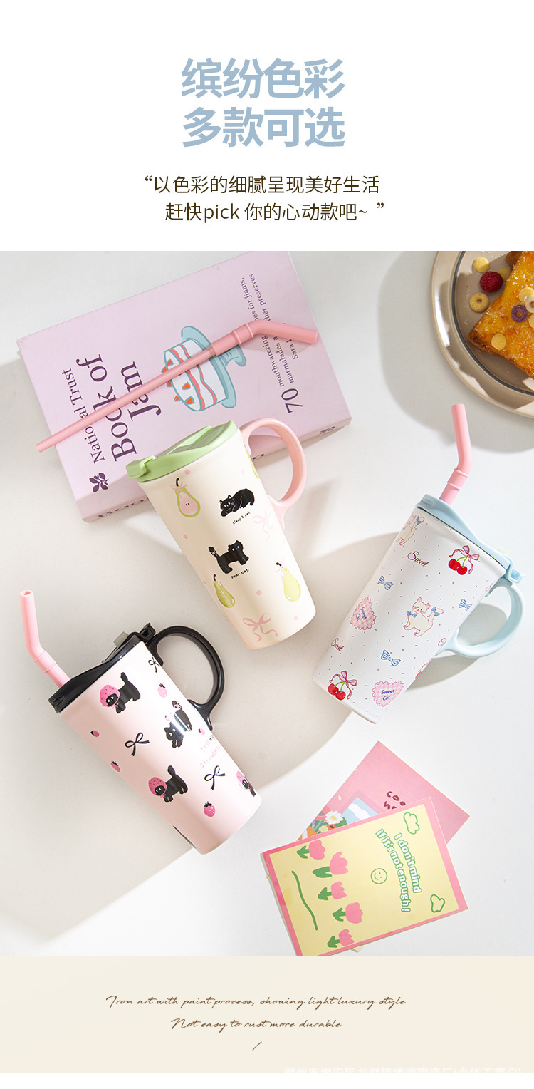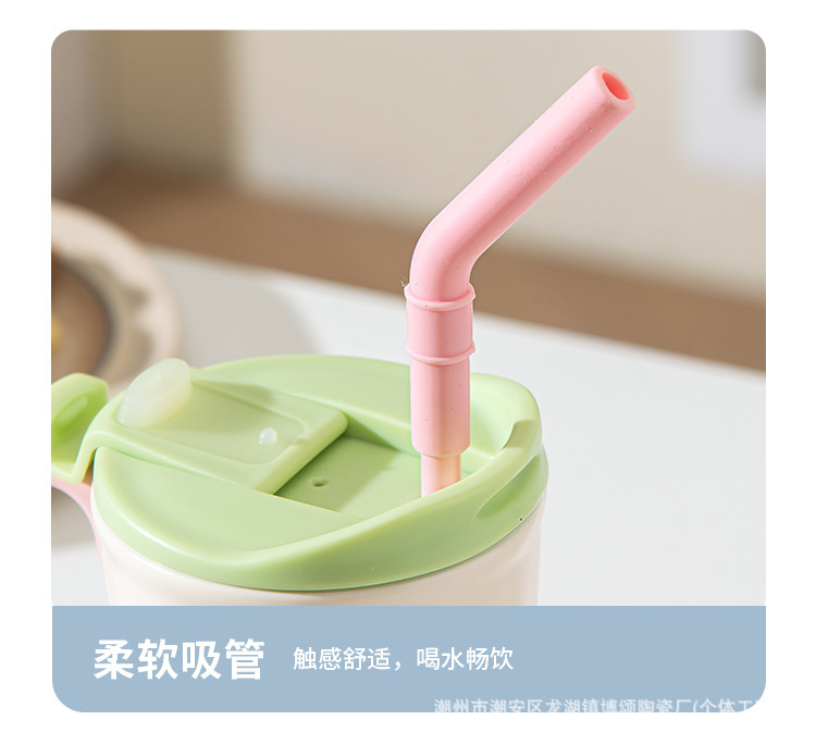 可爱水杯女新款2025高颜值陶瓷马克杯家用喝水杯子大容量吸管杯