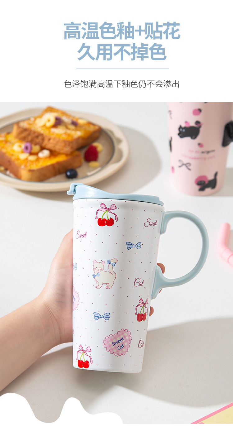 猫咪可爱卡通陶瓷杯子带盖马克杯咖啡杯办公室水杯早餐杯伴手礼