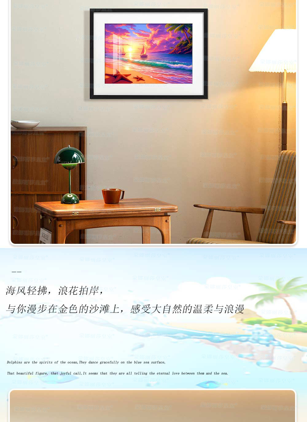 モナリザ皇室十字刺繍美しいビーチ新型夢幻の美しい風景客間装飾画手作りの糸刺繍