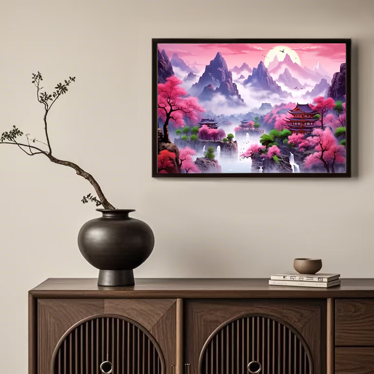 モナリザ皇室十字刺繍紫気東来小版中国式経典山水風景客間玄関手作り刺繍