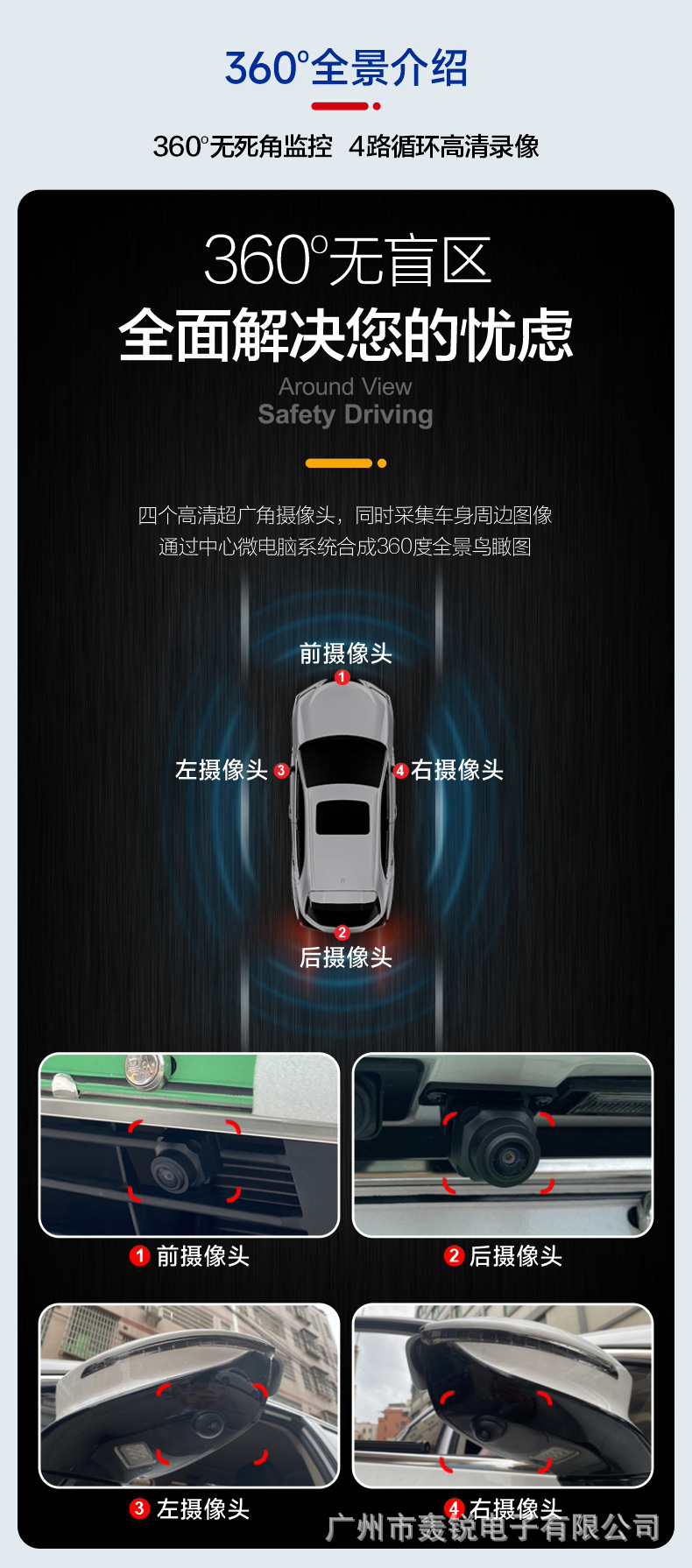 AI 360度パノラマ映像システムhd ahd1080 pバックバックカメラ四路ドライブレコーダ