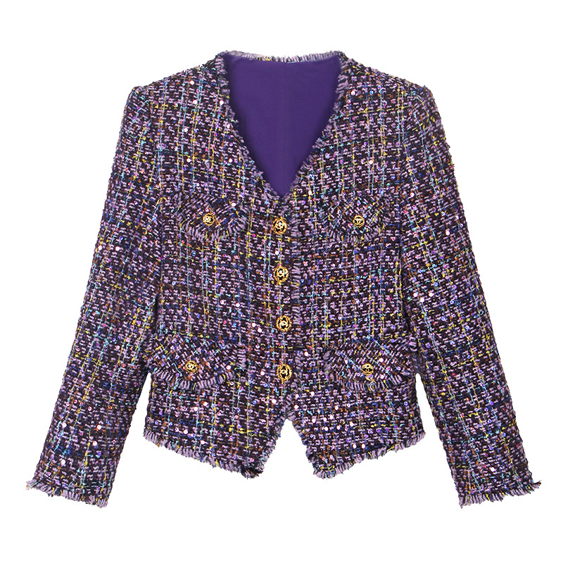 紫色のファッショナブルな高級感あふれるデザイン、手作りのフリンジ付きの香風ジャケット W28396